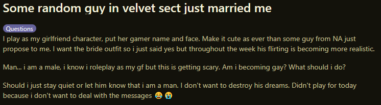 >украли графон >украли место на диске >рандомы не носят бочки >волосы не покрасить >бутихантер вторгается за разбитый горшок >конокрад убегает 10 минут >слишком мало контента мне скучно >слишком много контента я заебался >костюмы в шопе не показывают сисик и писик >в мультиплеере лагает >в сингле не парирует >дейлики слишком сложные >не везет в гаче Тяжело...