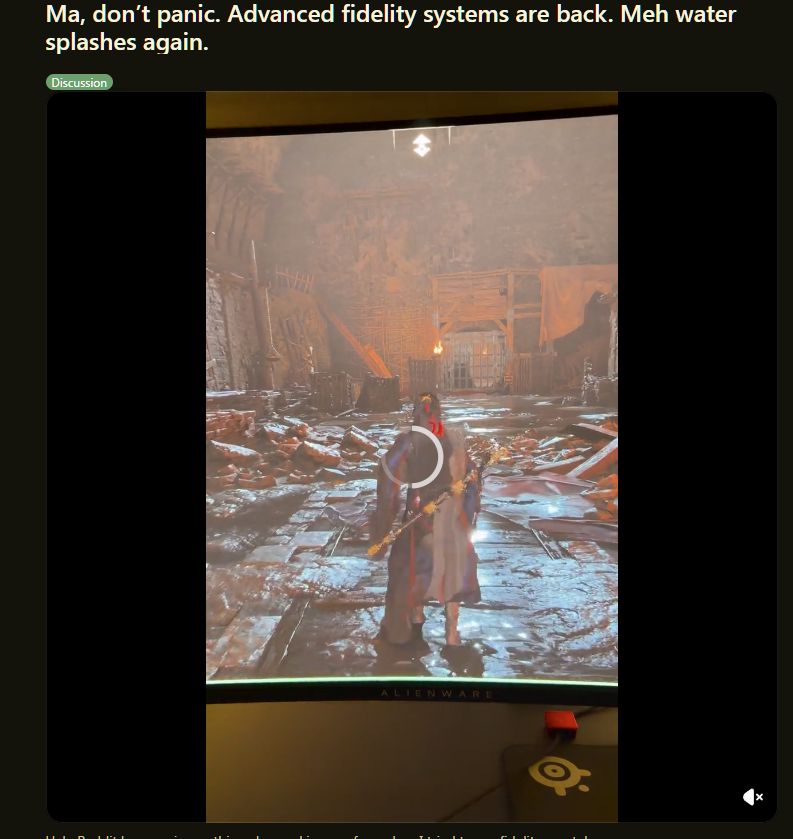 >>50597145 Смысл мне смотреть чужие видосы? Причём тут твоё и их? У меня своих с релиза больше 500, алё. У меня как бы своя голова на плечах и я умею сравнивать. Если у тебя всё ок, то я рад за тебя, тебе не критично, а меня трясёт от изменения даже в мелочах, т.к. для меня эта игра в основном визуал