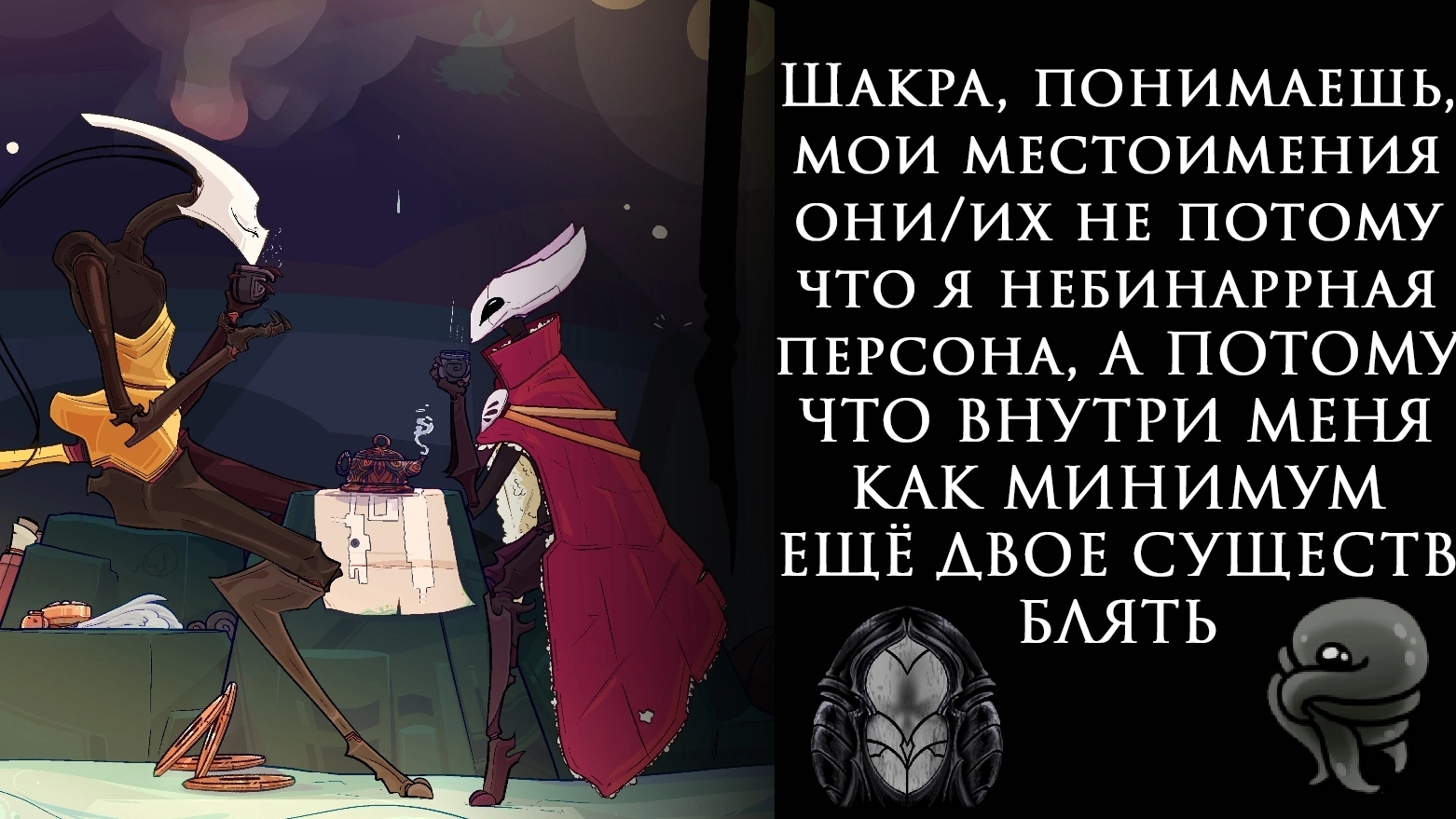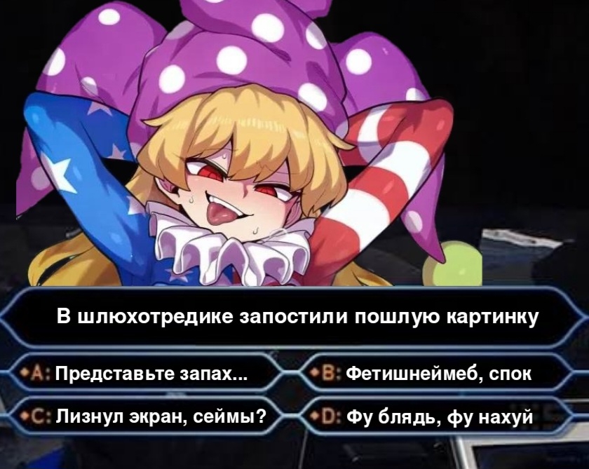 Тру годноты по тохе довольно мало, на самом деле. В основном подобные смешнявочки, где львиная доля хохмы пройдет мимо человека не знакомого с персонажами.