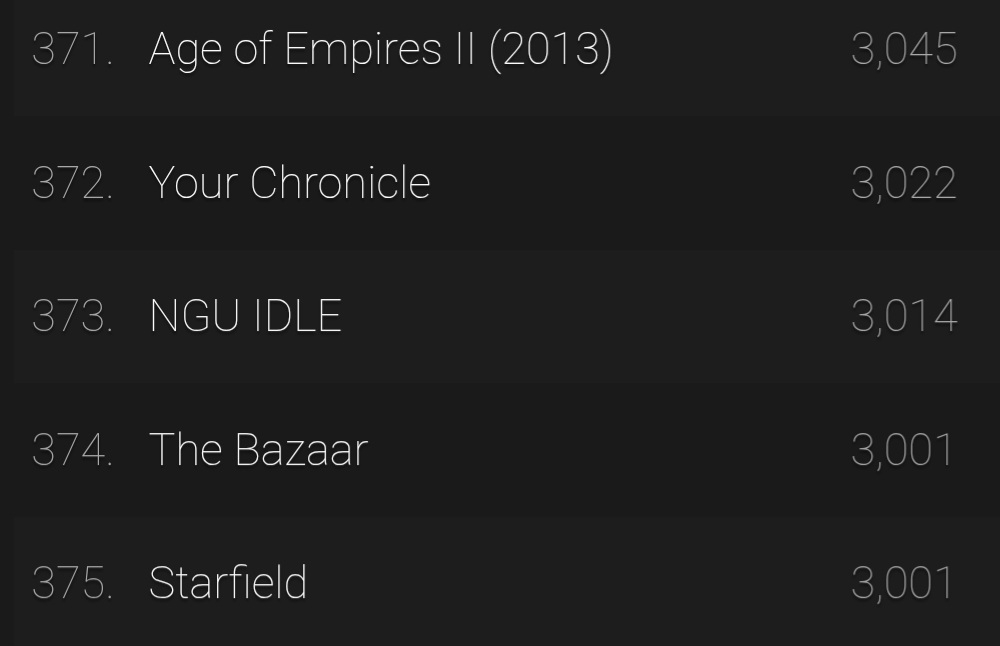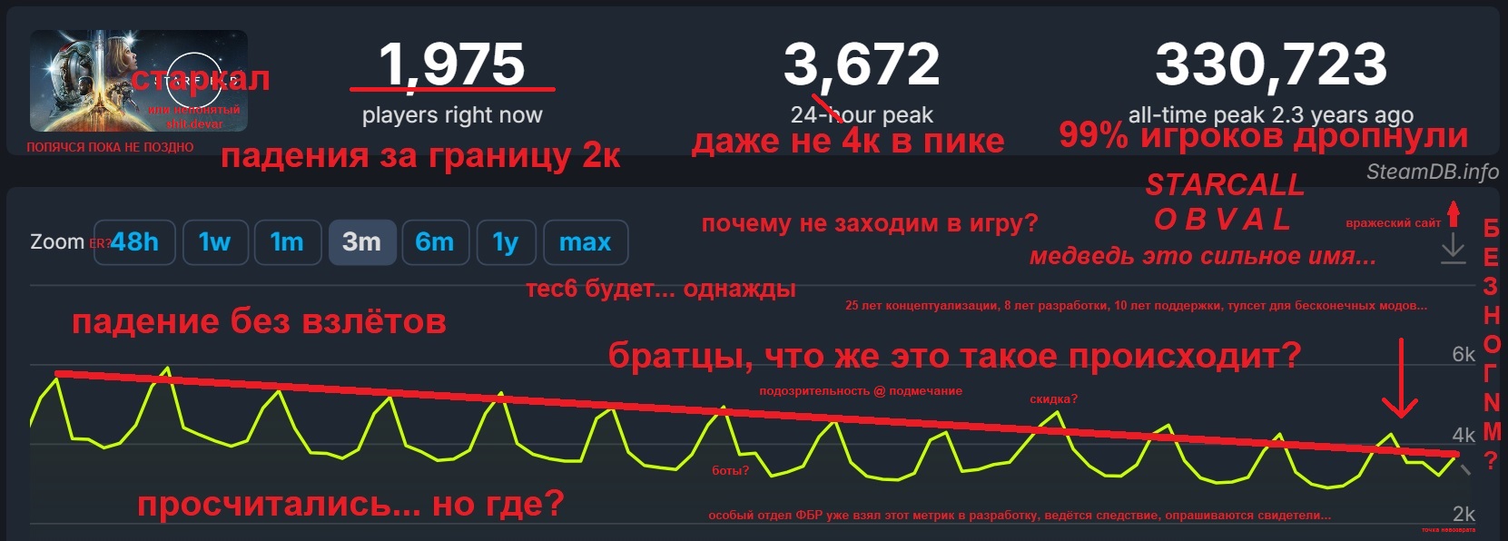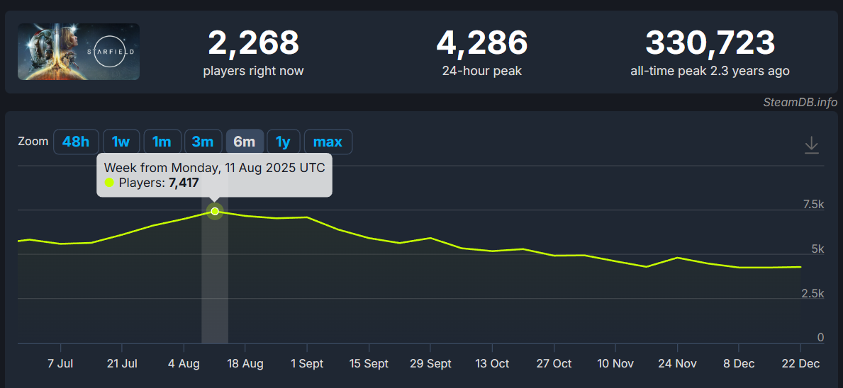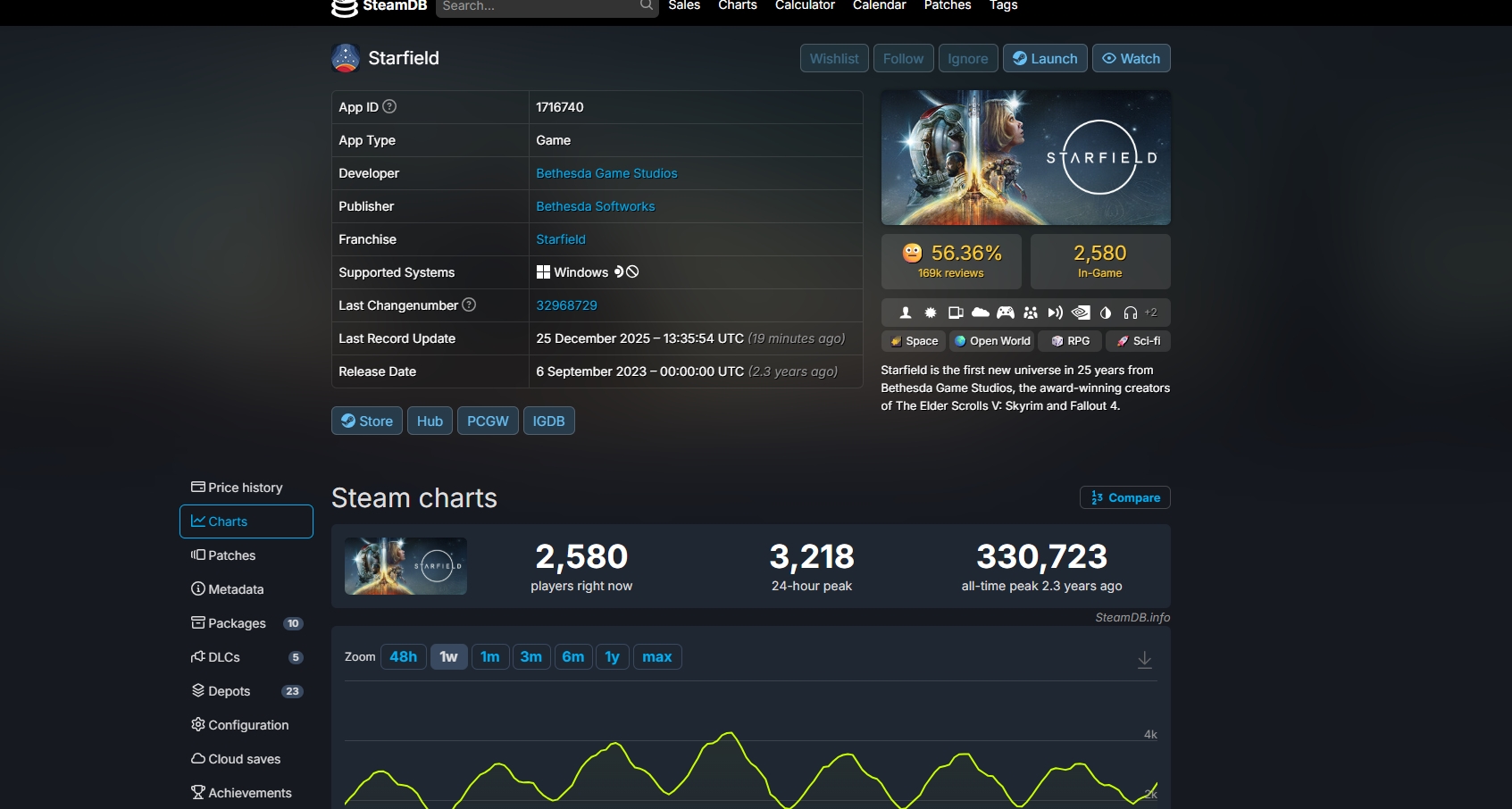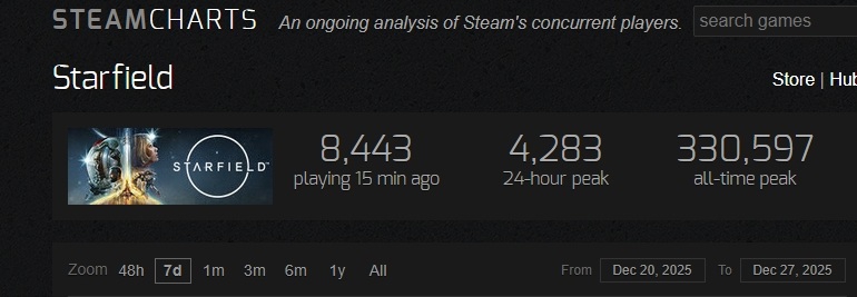 Что-то я так и не увидел статистики от наших знатоков-хейтерков. Мамка спать загнала? Очередное доказетельство, что вы только протыков на ютубе смотрите и не понимаете, насколько Starfield величественная и востребованная игра.