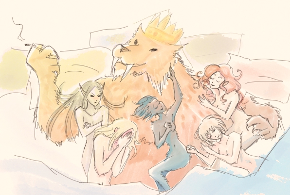 >Жар, исходящий от тела Арушалай, согревает вас и наполняет покоем. Закрыв глаза, девушка прижимается к вам сильнее, ее лицо тянется к вашему...