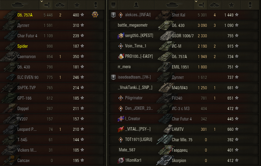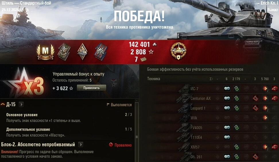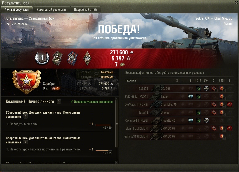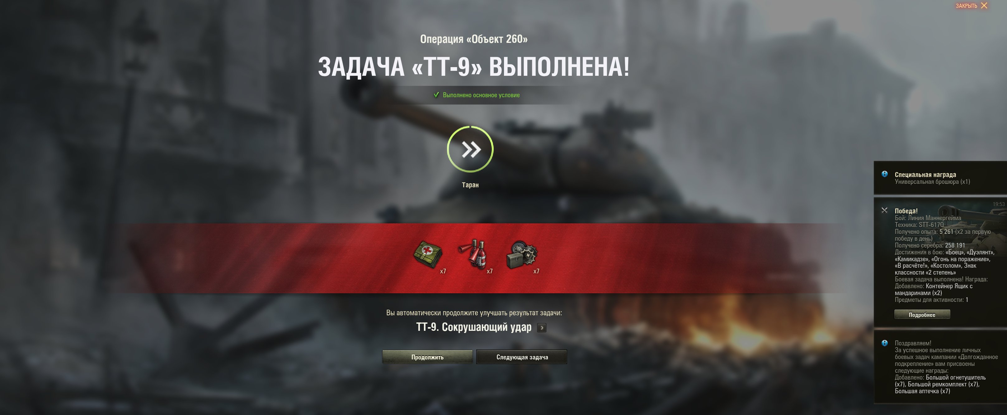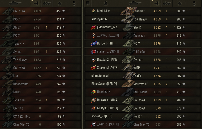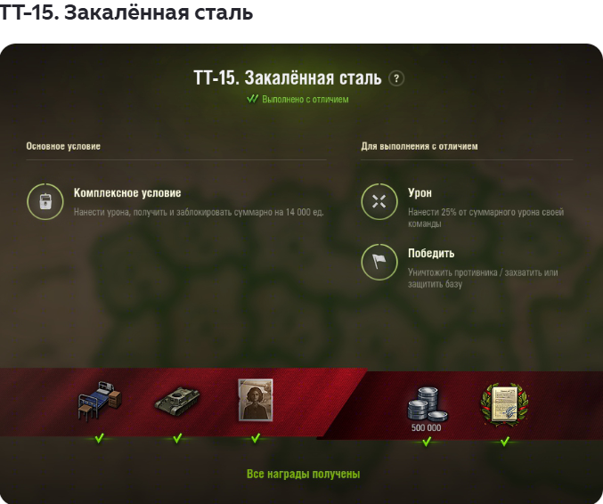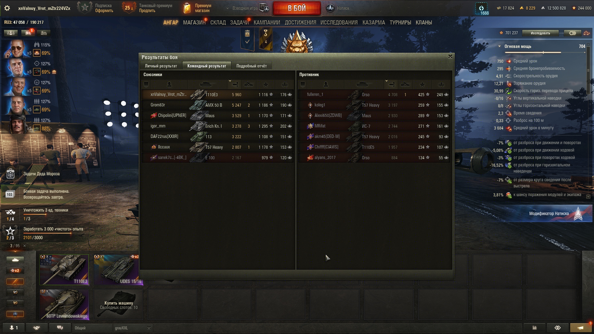 >>50588660 → >>50591102 → >>50591076 → Спасибо анонам за советы в прошлом треде, пердячая тяга не подвела, влетел с трех стами хп в Штюгмауса с 800ми, но видимо кто-то успел вдамажить ему и прокнуло. Осталась задачка на криты, если есть мысли и желание ими делиться, отговаривать не буду. Условие: Основная задача — повредить или вывести из строя суммарно 6 внутренних модулей или членов экипажа, второстепенное задание — уничтожить 5 машин противника. Леха 6к ммр