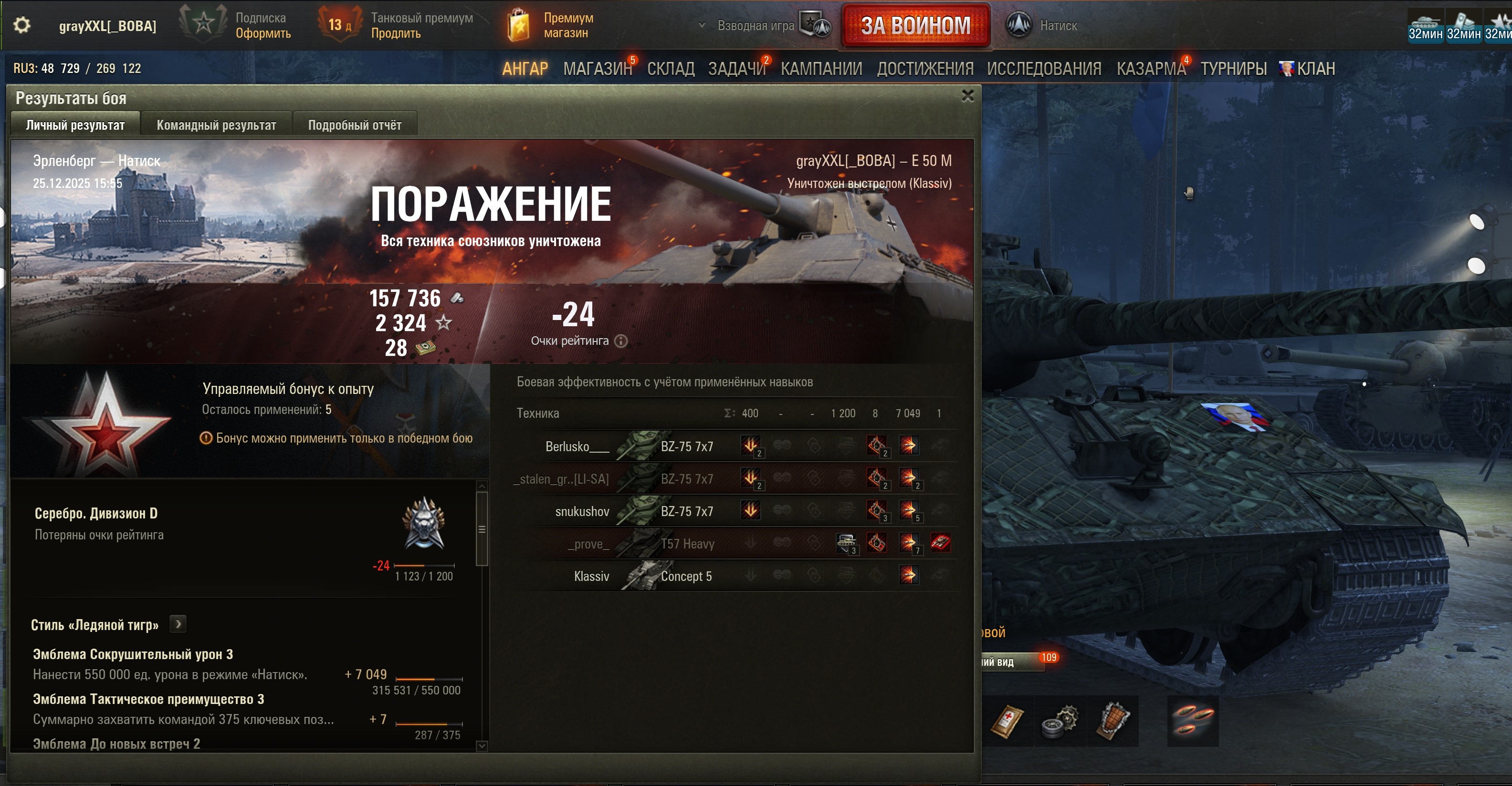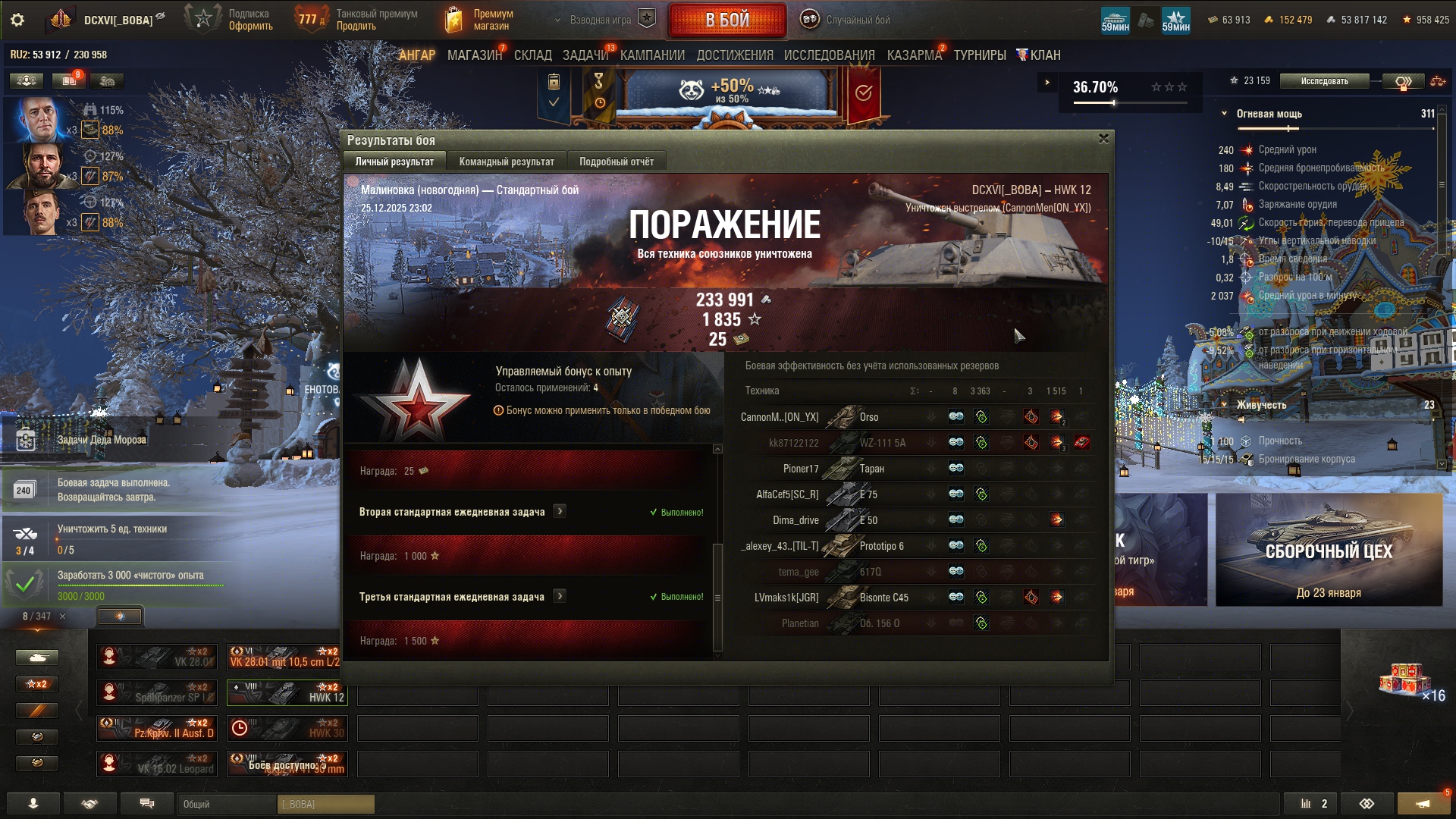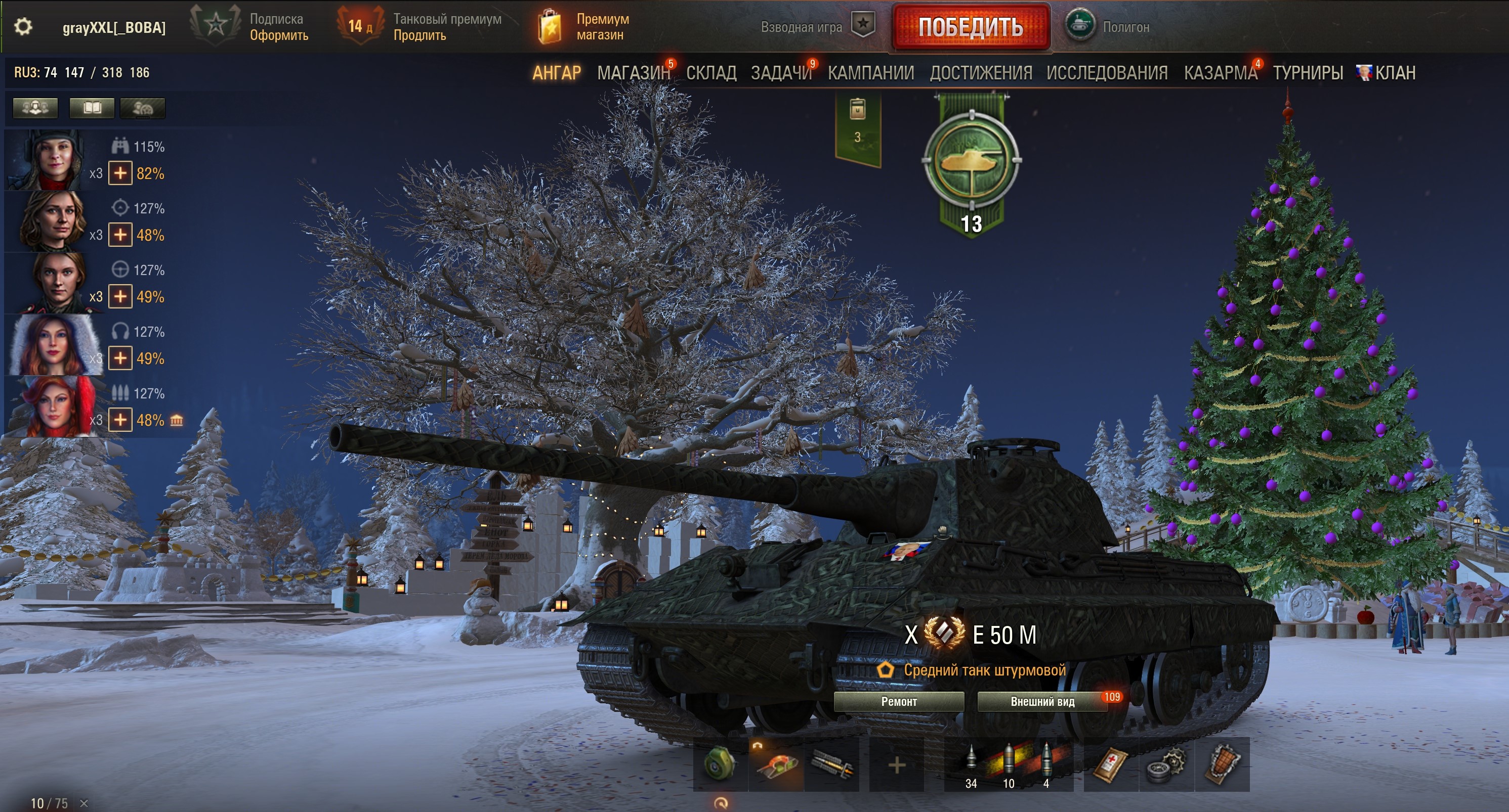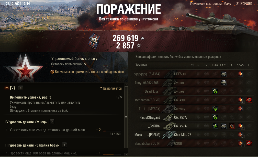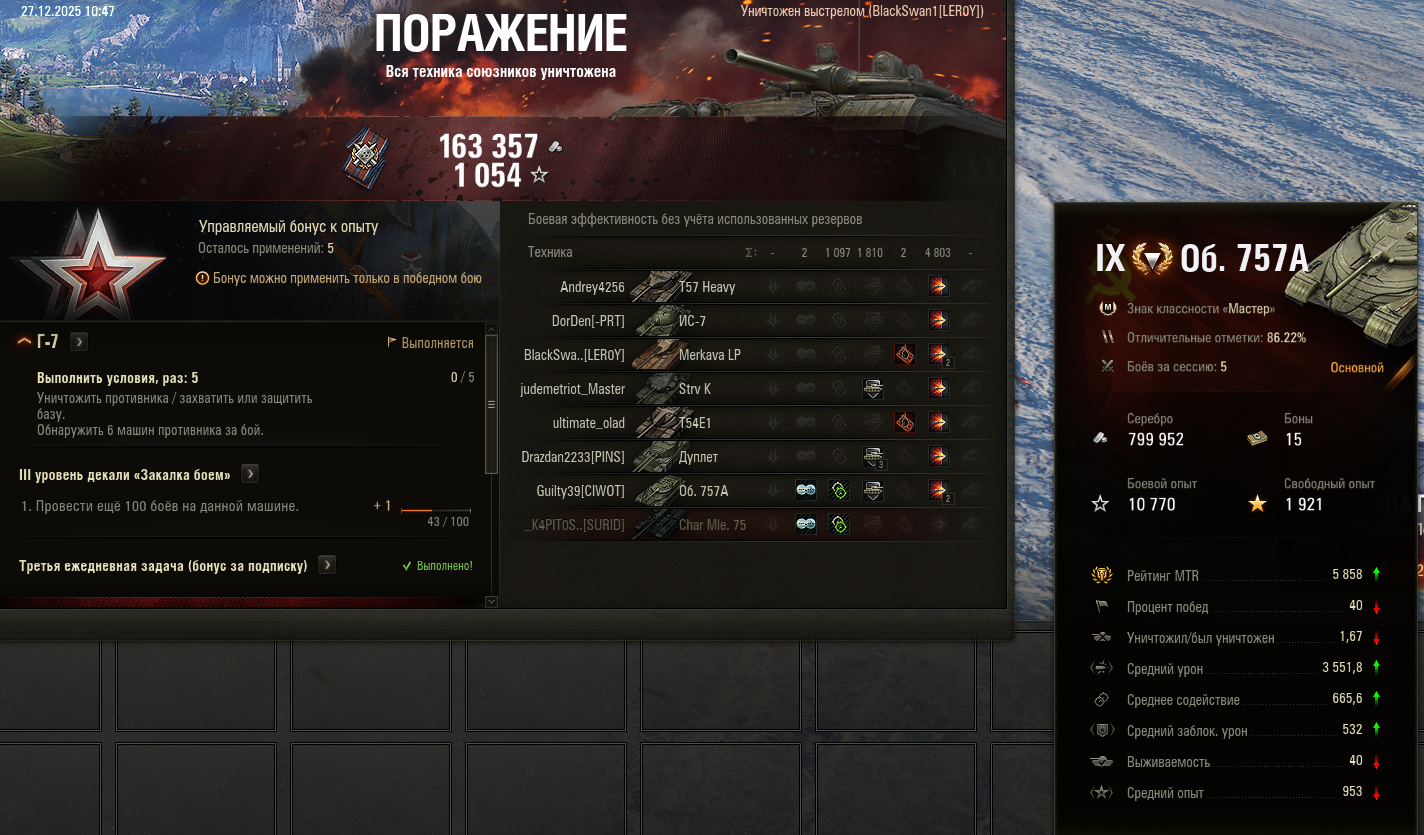>>50588660 → >>50591102 → >>50591076 → Спасибо анонам за советы в прошлом треде, пердячая тяга не подвела, влетел с трех стами хп в Штюгмауса с 800ми, но видимо кто-то успел вдамажить ему и прокнуло. Осталась задачка на криты, если есть мысли и желание ими делиться, отговаривать не буду. Условие: Основная задача — повредить или вывести из строя суммарно 6 внутренних модулей или членов экипажа, второстепенное задание — уничтожить 5 машин противника. Леха 6к ммр