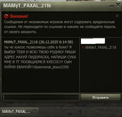 >>50609943 На сколько надо быть попуском и сливать команду, что кому-то не похуй на тебя? Один раз за все время натиска сагрилась чушка на немезисе, которая стояла с километра стреляла, не попадая (1к урона за 10 минутный бой, никаких плюх типа дымов не брал), пока мы с мужиками на алкашах базу брали под обстрелом всей команды врага ибо его еблойдом назвали
