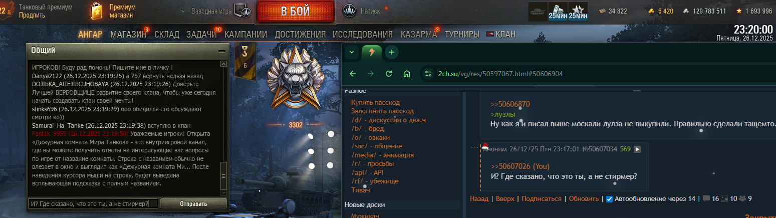 Чето в голос с танкиста. Зашел глянуть че там у свиней с настройками, ведь я туда захожу в лучшем случае раз в год при введении новой чудомеханики. А уж про чат не смотрел настройки последние лет 10. Оказывается находясь в ангаре можно пофиксить проблему говпредложений в личку нажатием трех или четырех клавиш. При чем я впервые вижу пункт про спам и хз что именно он скрывает и когда ее добавили. >>50612753 >в итоге под конец со мной спорит тот, за кого вступился, неся противоположную изначальному смыслу хуету. А чем еще в треде заниматься?