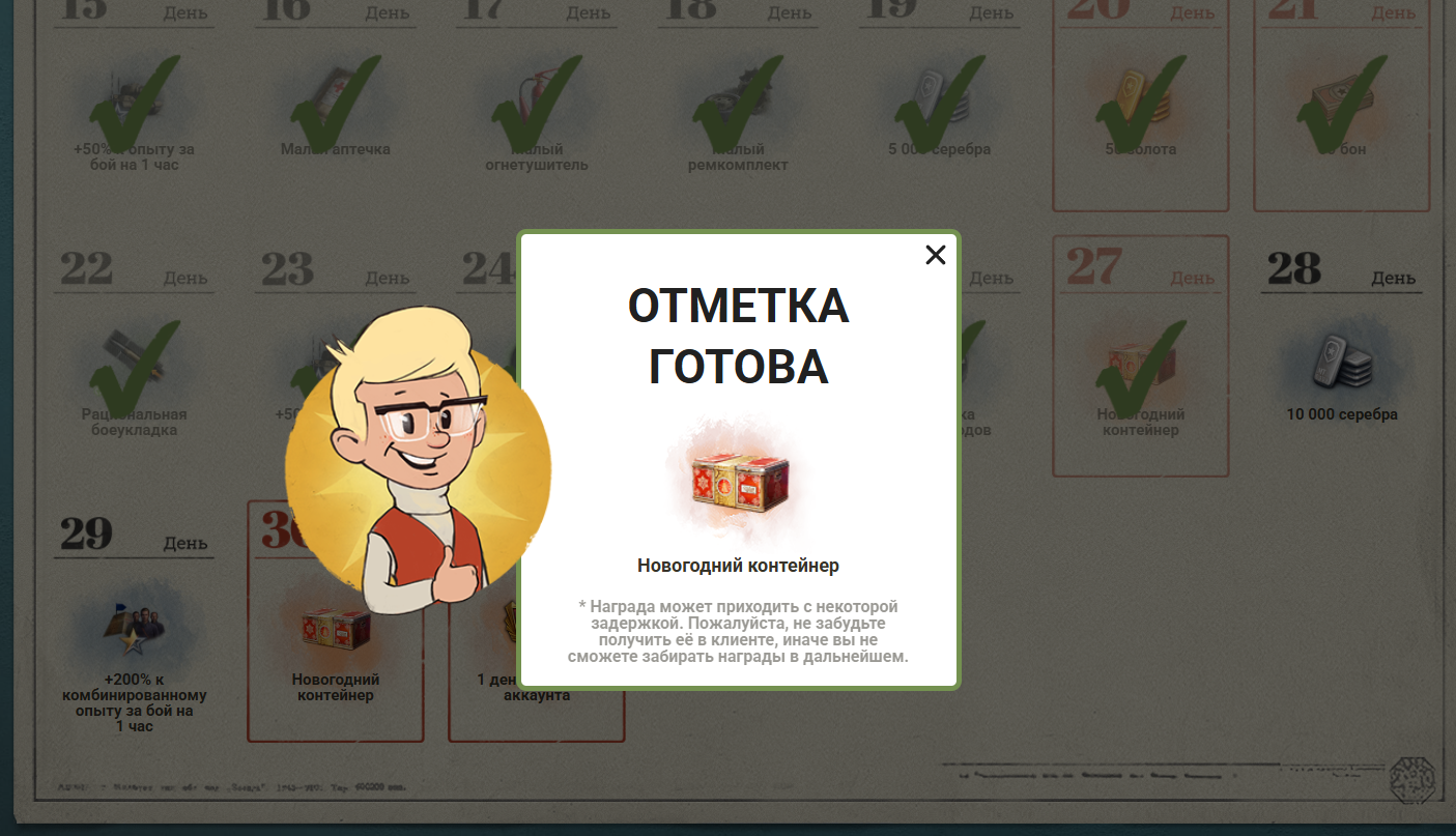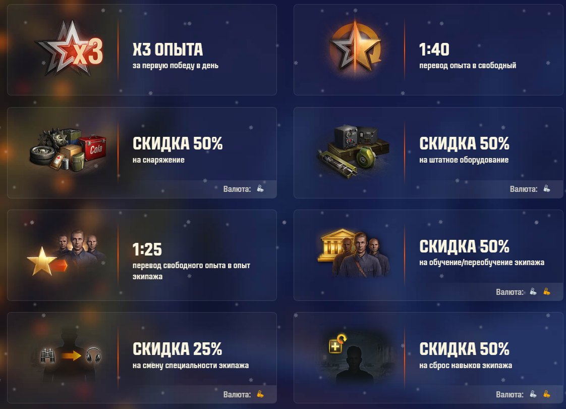 активным игрокам даст: 1 день танкового премиум аккаунта, Большой ремкомплект, Большая аптечка, Большой огнетушитель.