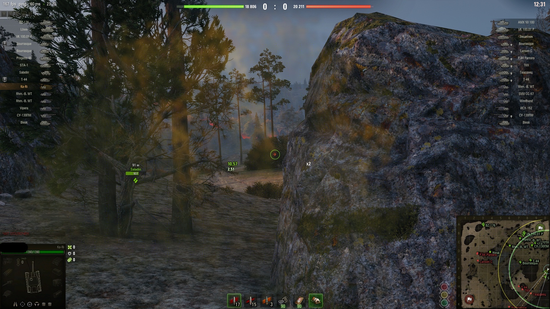 Этот танк со специфическим стилем игры. Когда я только на нем играл и приспособился, даже ЛБЗ какое-то выполнил, это было несколько лет назад. Сейчас у меня перестало получаться на нем. Предпочитаю бат чат.