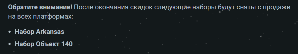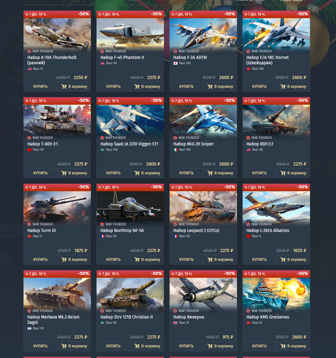 ТАК ЖЕ НАЧАЛИСЬ ПАКЕТНЫЕ СКИДКИ, УСПЕЙ КУПИТЬ Краткий обзор от анона в треде. НЕ НА ВСЕ ПАКЕТЫ. Набор F-2A ADTW -50% чудо Набор MiG-29 Sniper -50% чудо Набор Saab JA 37DI Viggen F21 -50% чудо, можно взять если нужен гриппен под наземный сетап. Набор Leopard 2 (OTCo) -50% можно Набор Al-Khalid-I -50% для ценителей Набор Challenger DS -50% до ввода бмпт его сетап был сильнейший на 10.7 Набор Merkava Mk.3 Ra’am Sagol -50% для фулл сетапа с леткой Набор F/A-18C Hornet (Швейцария) -50% чудо Набор M1 KVT -50% чудо Набор Т-80У-Е1 -50% топ прем игры Набор A-10A Thunderbolt (ранний) -50% чудо, маверики а не лочат и не дамажат, лучше прокачайте линейный Набор MiG-21 Bison -50% внезапно один из лучших прем самолётов. И бриты перспективная ветка.