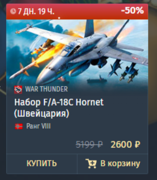 Купил за 40 марафонных гейкоинов швейцарский ф/а-18 и не покидает ощущение что меня наебали. Только не я сам ли себя наебал? С одной стороны я к этому и стремился когда фармил марафоны. Очень хотел прем-самолет на топах. А с другой стороны нахуй мне мемцы? У меня вся советская лётка прокачана и я сейчас США качаю. А этих даже не думал качать, у них и нет ничего интересного. Ещё эти парлы какие-то странные, летят хуево. Илс у самолёта какой-то треш с футами и узлами. Радар блять на 9/19/37/74 км! А нельзя было десятичное сделать как у советов? В асб ботов пинать нечем (4 бомбы гнсс или 4 маверика-хрен_попадешь). А ещё теплак чудо. На ф-177 намного лучше картинка, а он полковой и 6 ранга. Динамика дрянь и максимальная скорость маленькая. Ну, хоть крутится вроде неплохо. Серебро тоже по ощущениям больше с прем-аккаунта падает чем с этого самолёта. Ой-ёй, лучше бы румынский Миг-29 взял. Тот хоть переделка самолёта здорового человека.