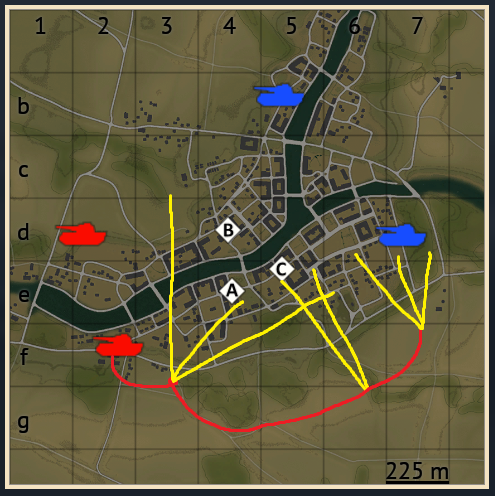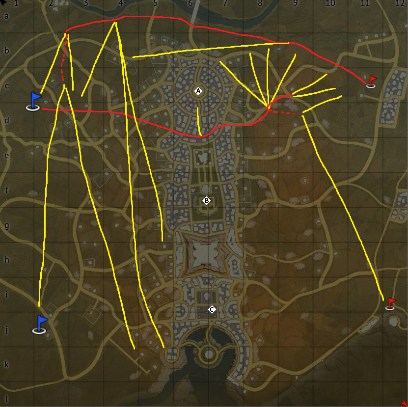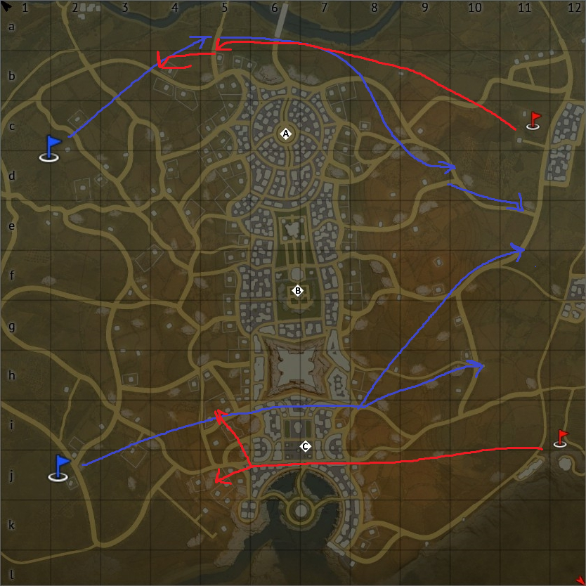 >>50612584 Ну карты-то чудо, конечно, и особо на них стабильно не настреляешь, но я вот так катаю. На первой слева едешь к лесопосадке и сидишь за холмиком, любители стоять в кружочках бегут брать Б, и ты всегда можешь попробовать урвать 1-2 фрага на их подходе к городу. Потом смотришь чуть правее, там огромный обзор на их половину карты, тоже часто можно кого-то найти там. Потом ждешь развития карты. Если вам ломают ебало на С прям сильно, то можно подкатить поближе и пострелять, но это плохой вариант, там много кустов и деревьев что мешают тебе, а не врагу. Лучше же поехать вперед в низину и оказаться в тылу у тех кто на С и с фланга у тех кто С прикрывает. Ты в низине, к тебе все бортом или жопой, идеально. Отстреливаешь всех, потом либо сидишь и ждешь новую волну, либо начинаешь подкрадываться к респу, но с этим лучше не спешить или окажешься 1в3-4 и соснешь. Отдельно отмечу что есть еще какие-то секретные обьезды по верху с левого респа и по низу с правого, но я их не знаю. С правого респа еду ближе к городу, там несколько островов с лесом, встаю между них и перерезаю пушеров в город и посматриваю на другую сторону реки, там порой можно увидеть парочку. Плюс накрывается позиция описанная с левого респа, но только если там даун, что вполне вероятно. Потом пушишь до нее и там уже кроется оба их респа и вообще пол карты. Но может прилететь в ответку. На третьей все очень просто. С левого респа пушишь сразу на вражескую половину, убиваешь 1-2 фрагов в городе и выезжаешь в борт всем остальным. Тут сидишь пока не заебет, потом допушишь в респу и готово. С правого респа сперва отстреливаешь из-за холмика первую волну и падаешь к реке, там вдоль нее едешь на чужую половину и от холма почти всю левую часть карты видишь. Ебешь всех кто респится и стоит за камнями. Из опасностей надо следить чтобы по первой линии тебе в лоб не приехали, и в А2 за домами могут сидеть. Ну и вертухи спавнятся у тебя за спиной. На последней хуй знает как играть, сидеть за домиком где-то в цетре и принимать в борт. Потом либо принимать врага что вас пропушил, либо аккуратно пушить оглядываясь на каждый угол.