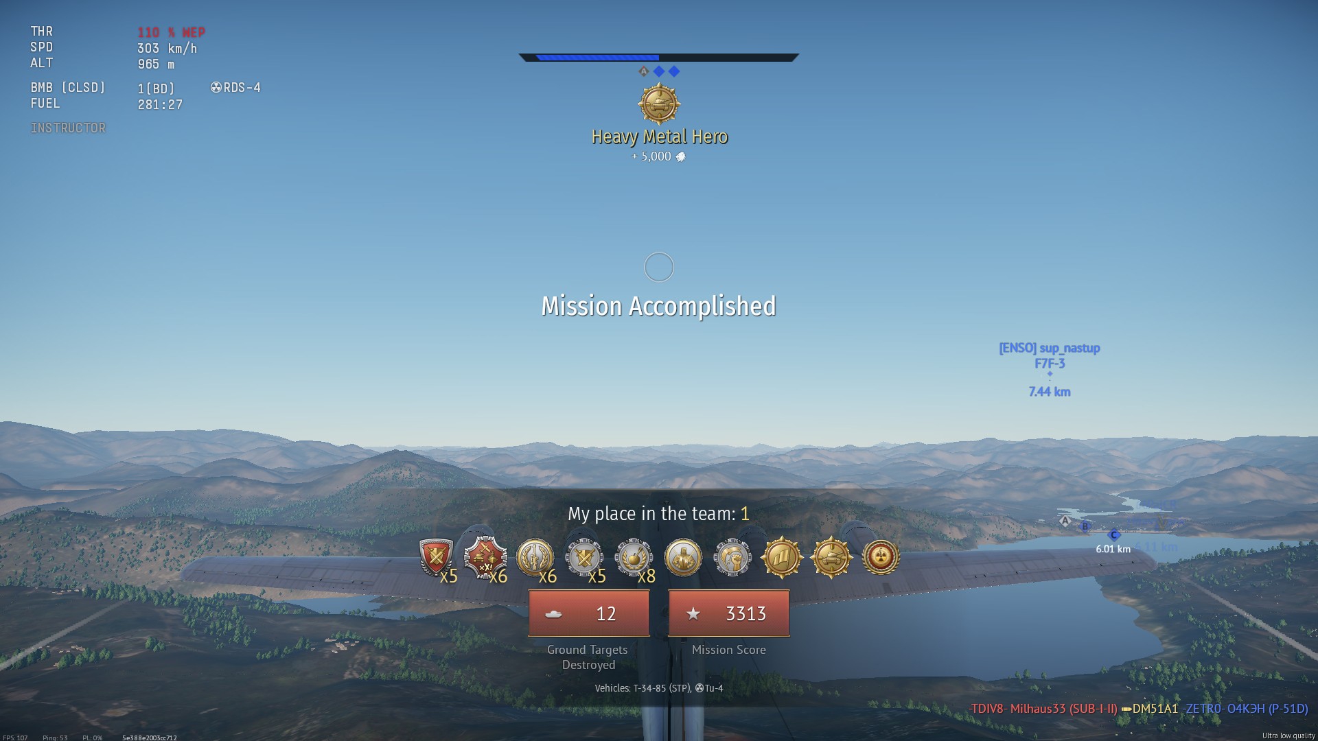 А всё же Dicker Max крут, если самолётов нет. Сделал восемь фрагов за один респ, но там противники были будто боты, в упор ничего не видящие (серьёзно, просто рядом проезжали, а я за камнем стоял, под конец боя поехав перебивать точку).