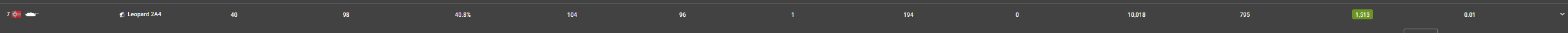 >>50610722 Амеры это моя первая ветка времен, когда и тысячи боев не было. В отличии от т90, которого я недели две назад качать закончил. А вот с леопардом2 я официально не знаю как это обьяснить. Да, его я тоже давно качал, но не так давно играл на нем еще, и все те же результаты. Но вот параллельно с ним я катал французского леопарда2 с буквально в 2 раза лучшим результатом. Шведского лео, который стрв, я тоже катал дважды, оба раза одновременно с немецким, и там тоже в полтора-два раза лучше результат чем на немецком. Немцы вообще проклятые какие-то. Тот же 2к определенно монстр-танк, но получилось на нем куда хуже чем на сабре с того же бра. >неизвестно на каком БРе на тайп90 ты эту стату набил Все известно, там же можно взять бои по сессиям. Начал недавно, до патча с расширением до 12.7 топов, а закончил вообще вчера. Мне он, кстати, тоже не понравился. >>50610732 Не понял о чем ты. Шведов на 10.7 качал, там больше. Немцев на 10.0 качаю, там больше. Бритухов качал на 10.0, там больше, на 10.7, там больше. Франция на 10.7, там значительно больше. Жидовна 10.0, там еще больше, но на 11.3 меньше. На япах больше. Китай чудо, италия чудо, но тут и не спорит никто. На амерах считай не играл. >>50610791 >мы рассматриваем весь сет-ап. Ну так так и пишите. На сетап я могу только пукнуть гринтекстом и смешной картинкой, в такие споры я не лезу, как выше уже сказал, оно мне не интересно.