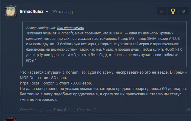 >>50701532 Про цены реально шиза. Абсолютно все Форзы стоили 60-70 баксов и премиум 100+. Кто успел - купили премиум за 40-55 баксов, кто не успел - могут базу купить за 40 баксов, переживут без 10 машинок на релизе. При этом у еврокуков цена вообще под 150 баксов. Лучше бы работу нашли, чем ныть в интернетах как будто регионалки нам прикрыли вчера, а не 5 лет назад.