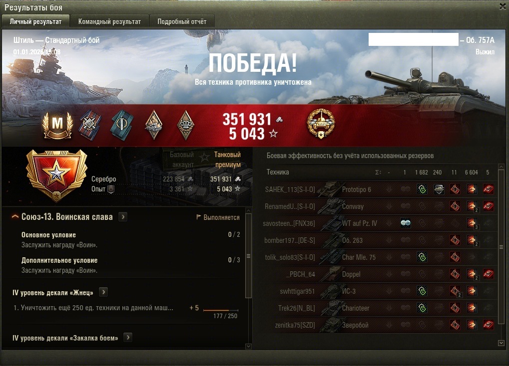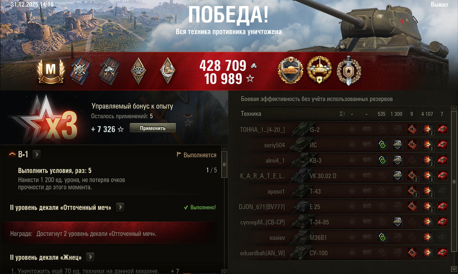 Я точно скипну на 14 фрагов ст на шведах/амерах, т.к. на них сейчас не играю, и скипку на 4000к урона в 9 боях, т.к. играю в основном на 8ках премах, а с моим скиллом 4к на них не часто делается