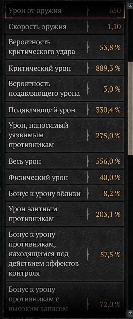 >>50639875 >Основной урон holy/fire если с перчатками. >Зачем ему физикал? Полез разбираться в механики, нашел гайды каких-то чудоедов, вудийо или как-то так - так они в дереве набирают ему физикал. Меня это возмутило до глубины души, потому что попытался потестировать, и кажется что физикал не бьет. Однако мало ли какое-то взаимодействие упускаю из вида. Пока получается, что нужен файр урон, нужен нон-физикал урон, вульнер урон, крит урон (оверпавер непонятно как прокать пока) и легендарные бонусы с парагона. Холи работает только с мерков, есть мысль вместе с мерками взять свинособак с руны и посмотреть, будет ли прокать с них. Но тестировать на дамми откровенно тяжело, поэтому и хочется куркулятор. И эмулятор парагона - сравнить выхлопы с разных путей в дереве.