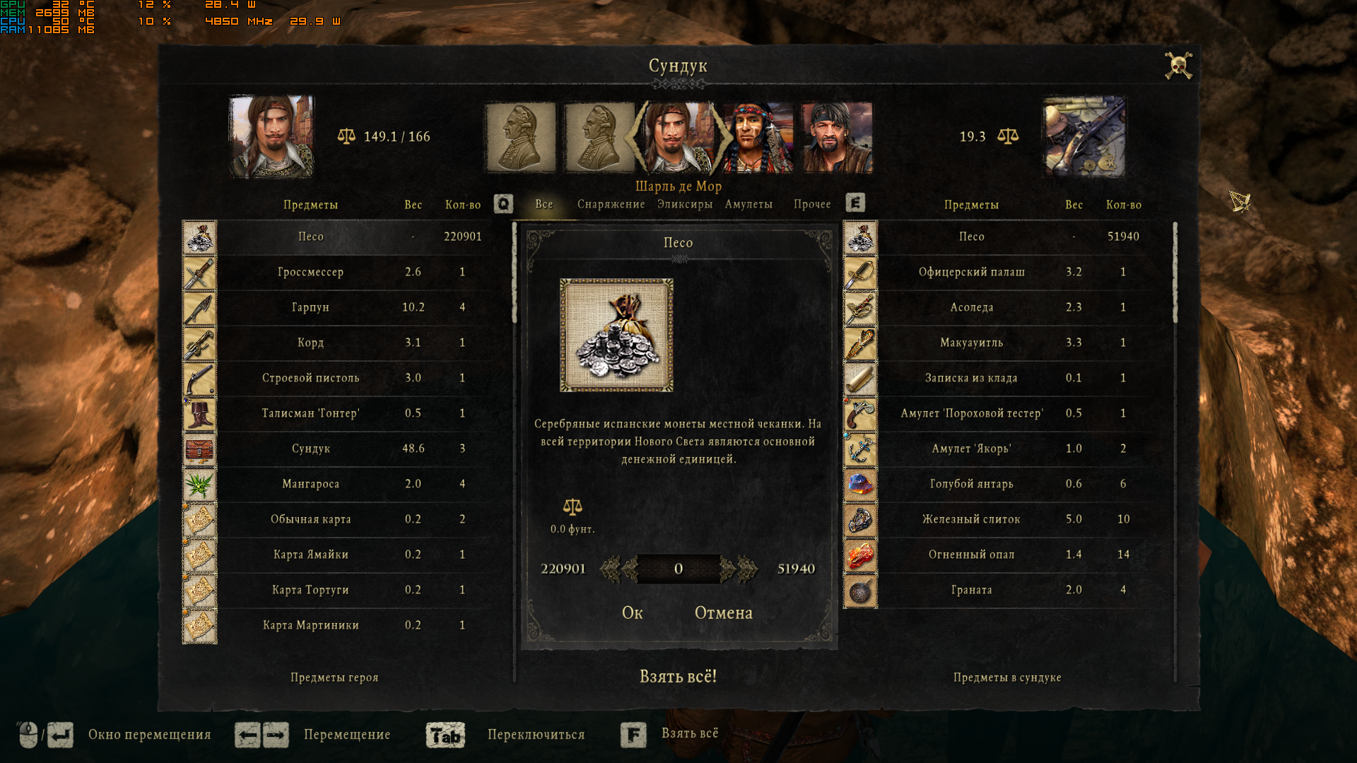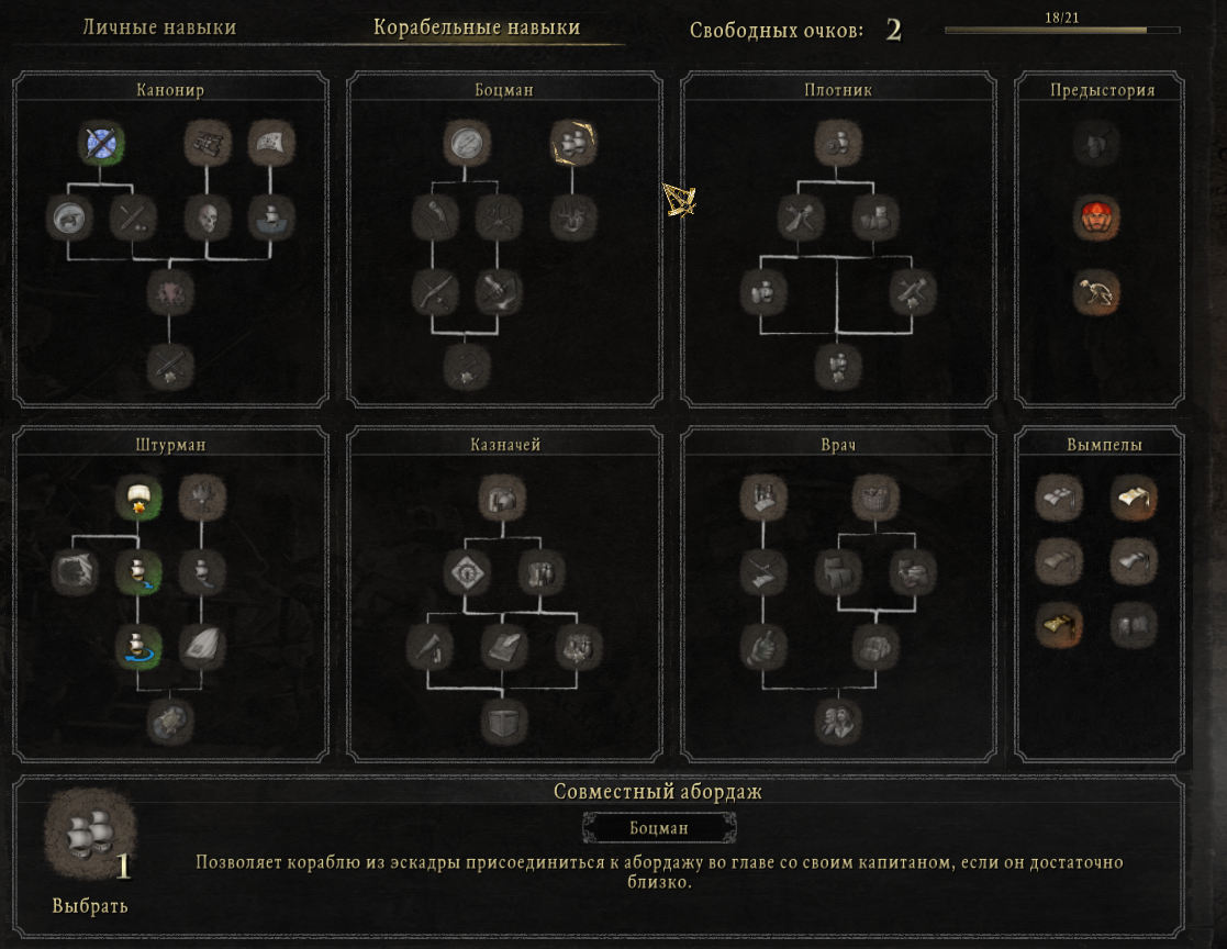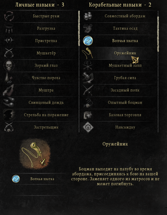 А вот сюда нужно добавить кнопку, чтобы во время абордажа всякие расходники сразу в сундук капитана скидывать, а не перетаскивать их через абордажников и свой инвентарь. Особенно с перком, когда после абордажа с палубы пылесосится под сотню предметов.