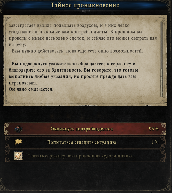 Или вот проникновение. Пока одни реализуют фактически ленивый чит в виде взятки страже, вторые заморочились и присрали текстовые события, как в Крестах или Рогуе Торгуе.