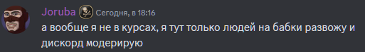 >>50666623 > под крылышко модераторов жорубы На серваке кл сейчас мир, дружба, жвачка, пока калопольд бьётся в истерике, трёт посты и раздаёт муты с угрозочками. Ты чот попутал, петуч.