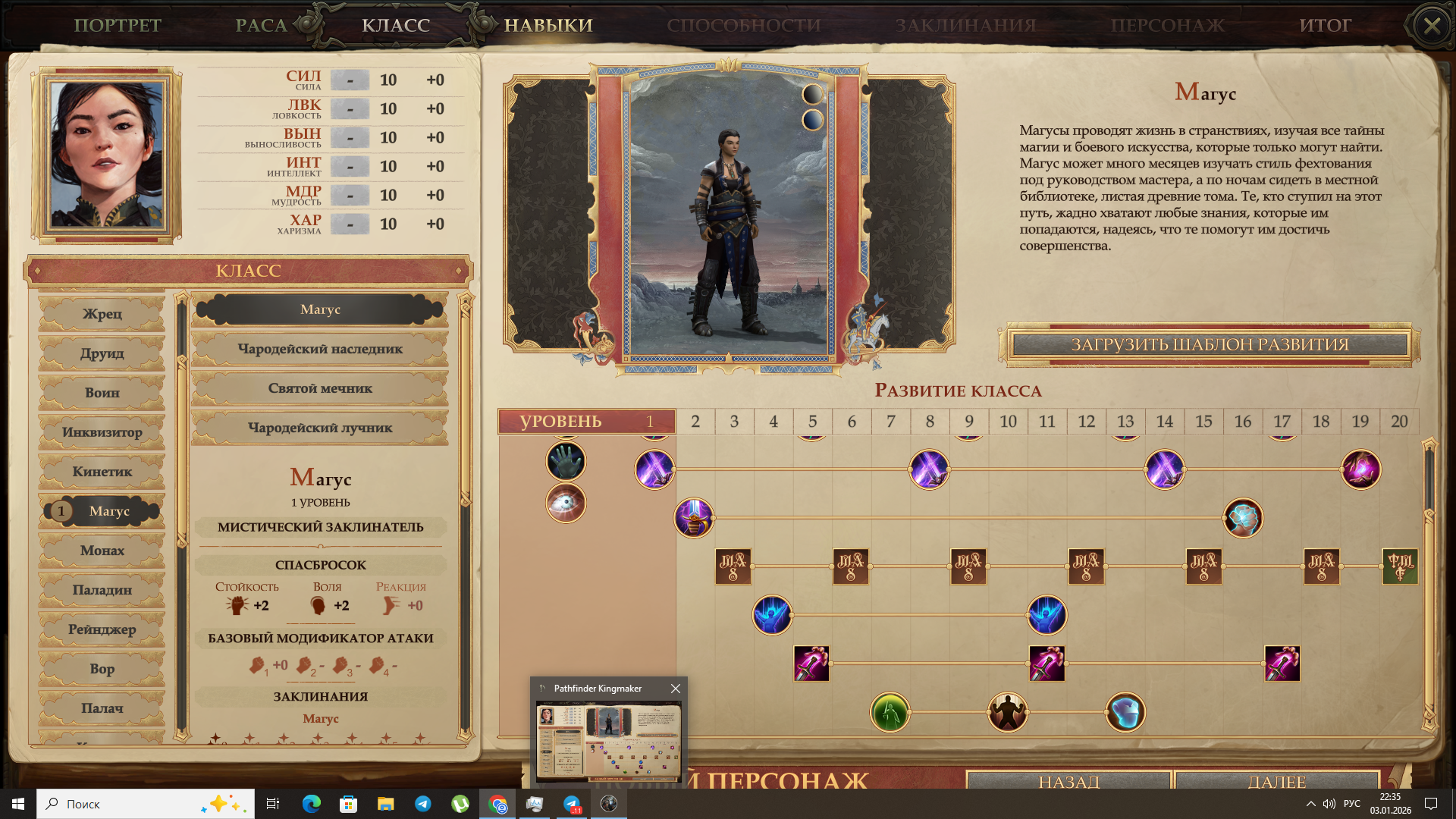 >>50632745 >Вкатываюсь в Короледела Дополню >>50632760 себя, что эксперементируй, почитай описания и архетипы и не занимайся метадрочерством - просто получай удовольствие от игры. А для убеждения просто будешь повышать его каждый лвл+возьми убедительность/Эксперт:Убеждение.
