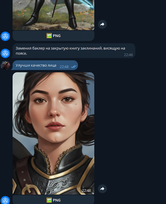 >>50632667 >Пусть на поясе вместо баклера висит закрытая книга заклинаний, лицо не менять Ммм, нууу, типа да, но нет. Я обычно так пишу - "Замени щит на поясе на книгу. Лицо, фон и все остальное оставь без изменений, пожалуйста"