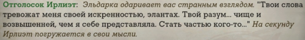 >Это всё не имеет отношения к игре Да с чего бы это? Это буквально так и есть в игре и в лоре. Ты для эльдара даже при самых возможно теплых отношениях будешь чужак относительно его сородичей.