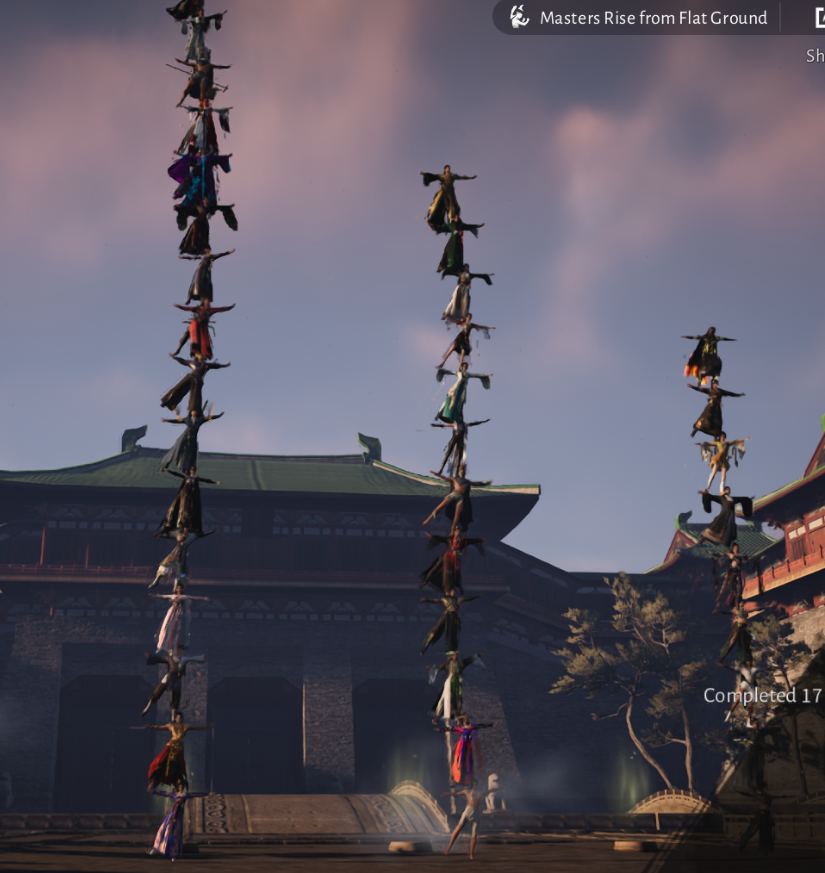 Игра вроде про сеттинг боевых искусств, а активности и игровые режимы 90% это всё не боевое. А могли бы мехник спиздить типа выживач сделать бесконечный с мобами или защиту, эх ну ладно, буду жрать