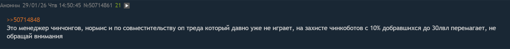 >>50686829 Эм, ты не то про обо мне подумал, как бы. Не занюхивал всё это а ля сундучки и травка пазлы хуязлы. Я не из этих геншиноподобных - в такое не играю. Вообще что ты называешь контентом, кстати? У меня каждая область по 30-60% открыты только, не собраны все эти кузнечики и прочее - это не контент, это тупо развлечение для ОКРщиков собирать ради собирательства и ачивок. Не делал вондеринг вот-это-всё вообще, кто их вообще делает, какой смысл и профит? Контент в смысле квестов? Ну да, интересно развитие истории и даже побочки типа энкаунтеров, но это всё закрывается в первый час релиза этих квестов. Игры, где нет квестов, это игры полупесочницы, где контент завязан на опенврот масс пвп противостоянии, а здесь кал а не пвп - что-то казуальное невнятное. Вообще ждал от игры погружения в историю и импакт от уся, а получил хуякт хуйсося, чую меня наебали - вот основной мой посыл. Я здесь побольше многих наслаждаюсь игрой и каждый день залетаю. Просто выпрыснул и своё настроение, как фаната игры. Дайте мне историю, ибо больше эта играть по дизайну своей механики дать не может, а мне и не надо, области расширяй узкоглазая мразь и неписей побольше, это не сложно же. ЭТО УЖЕ ЕСТЬ в Китае, в том и дело.