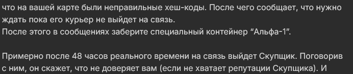 >>50658251 >>50658256 И так, оказалось, что надо зайти и выйти с улиц таркова. Потому что по задумке БСГ гениев, ты должен был наверное прочитать все эти документы на локаации, чтобы это сразу сработало, а не потом как выйдешь спокойно в схроне. И вещей для тех кто будет искать - 4 шт 2 вырезки из гозет 1 папка фсб и 1 розыск говнюшка, так что всё правильно, но как обычно работает через жопу.