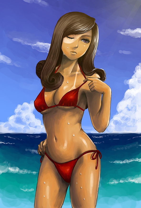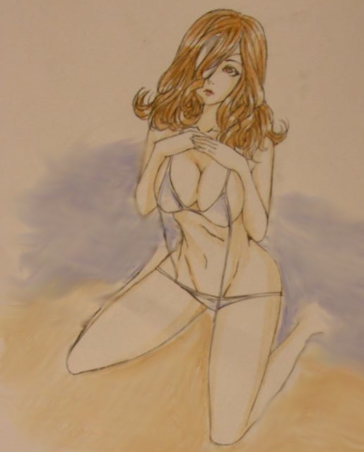 Если честно, офигел, когда лазал по архивам и нашёл больше одного рисунка с ней на эту тему. Её и пляж будто ничего не связывает. И она не главная девочка, не Тифа какая-нибудь, чтобы перерисовывать её постоянно в разном виде. Загадка, в общем.