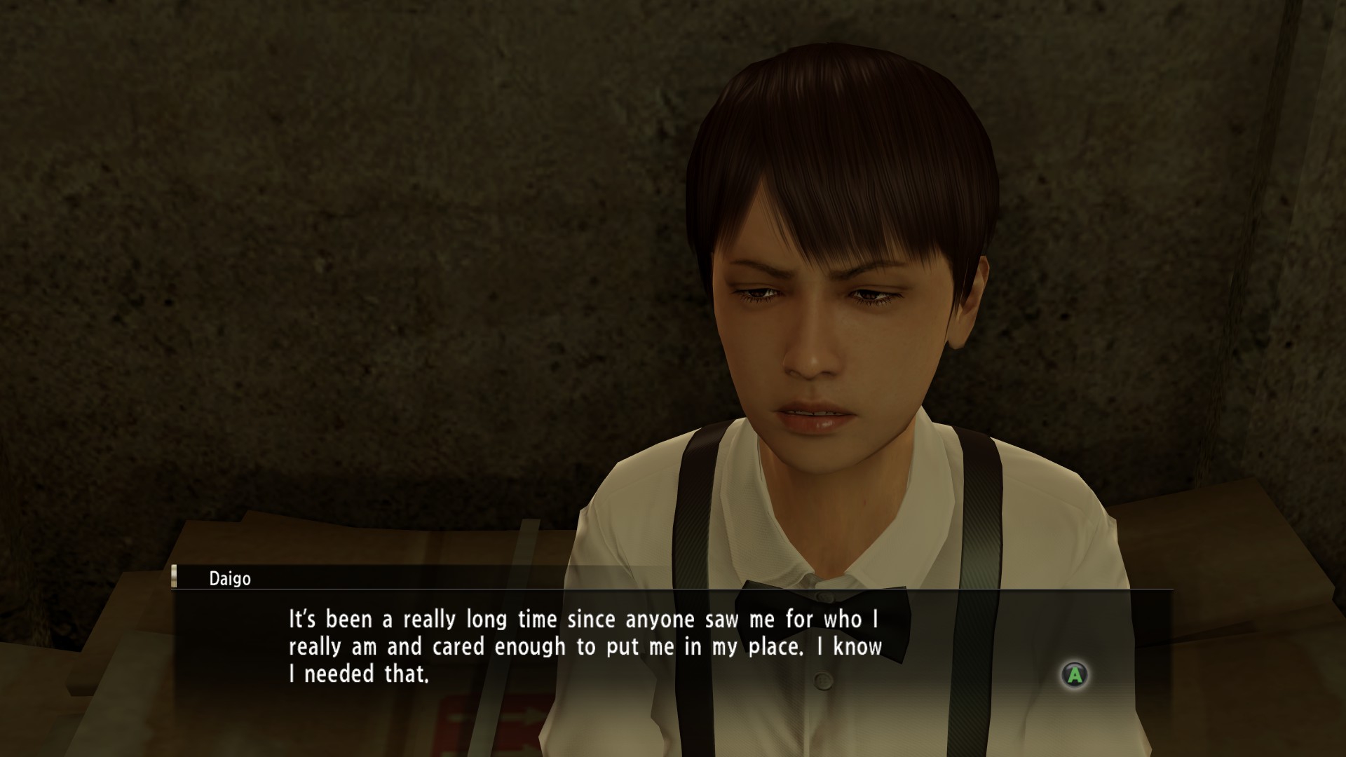 Сюжет. Вообще ни на секунду не заинтриговал. В Якудза 0 была довольно интересная криминальная мелодрама, которую тащат на своем горбу запоминающиеся персонажи - и положительные, и колоритный ростер "злодеев". Каждый эпизод был на кончиках пальцев и заканчивался интригой, продолжение которой хочется узнать в следующем. Драма, комедия, политические/криминальные мутки - все на месте и все отлично работает в тандеме. Здесь же какой-то странный тон и хуевейший темп. Я даже не знаю чем мы занимались всю игру??? Ну, шли по следам нашей возлюбленной, пока нас подкармливали катсценами с историей превращения Нишки в отрицательного персонажа. Звучит как точное описание сюжета, как по мне. Такое чувство, что в первых актах была завязка (сама по себе не особо интересная), затем 8 актов филлера и внезапный финал. Из персонажей здесь унылый детектив, о котором, даже при желании, не могу ничего написать (настолько он пресный), а помощь его дочке - это почему-то часть основного квеста. Владелец клуба и его друг. Опять же, ничем не выделяются и нечего сказать. Нишки сделали карикатурным злодеем с невнятной мотивацией. Причем это показано настолько резко и без какого-либо развития: в одной из сцен он дает пощечину барменше - это и является переходным моментом. Провели вот такую жирнющую линию, как бы сказав игроку "ВСЕ! Этот персонаж стал отрицательным, всем срочно ненавидеть его!". Потом всю игру (вплоть до титров) он занимается "злодейской активностью" и его не пытаются наделить какими-либо положительными качествами. попук в конце даже попыткой нельзя назвать Лоля приколюшная, но она почти всю игру сидит в хайдауте, лишь изредка вылезая на прогулку в караоке, а потом в конце накатывают псевдо драмы с ее участием. Не чувствуется никакой отец-ребенок/опекун-подопечный динамики, особенно на фоне Макото из 0. Предполагаю, что это мы увидим в последующих играх, но здесь она выполняет декоративную роль. Мажима. Мне больше нравился спокойный и размеренный владелец кабарета из 0 (как, думаю, и большинству людей), нежели гротескный "положительный злодей" из этой игры. Но это не претензия как таковая, потому что его не испоганили здесь (очевидно, ведь это первая игра серии), а скорее сделали крутую предысторию в приквеле. Впрочем, о нем позже. Жирный подземный лорд - пожалуй лучший персонаж среди второстепенных. Весь этот, скажем так, "любовный треугольник", состоящий из Кирю-Юми-Нишки (и Рэйны) - это какая-то высосанная из пальца хуета, которая никак не тянет на одну из основных линий игры. Но самый пиздец - это финал. Оказывается, что девушка, которую мы НИ РАЗУ НЕ ВСТРЕЧАЛИ ЗА ВСЮ ИГРУ (Мизуки) - это тот же человек, что другая девушка, которую мы наблюдали целых ПЯТЬ МИНУТ В НАЧАЛЕ ИГРЫ (Юми). Вот это срыв покровов нахуй! Какие эмоции я должен испытать от этой информации? К тому же в этом 20 минутном лор дампе в конце игры сценаристы решили достать из рукава еще одного персонажа - ее мужа. Внезапно он теперь главный злодей игры (и по совместительству худший босс-файт в истории видеоигр). Даже смерть Юми подается как самая важная трагедия игры и на нее выделяется больше всего времени, хотя с точки зрения игрока, прошедшего Якудза 0, смерть "бати" Кирю куда более трагичная. Во время предсмертной речи Юми (которая длится в 5 раз дольше, чем следовало бы) я мысленно повторял "ну давай уже закру