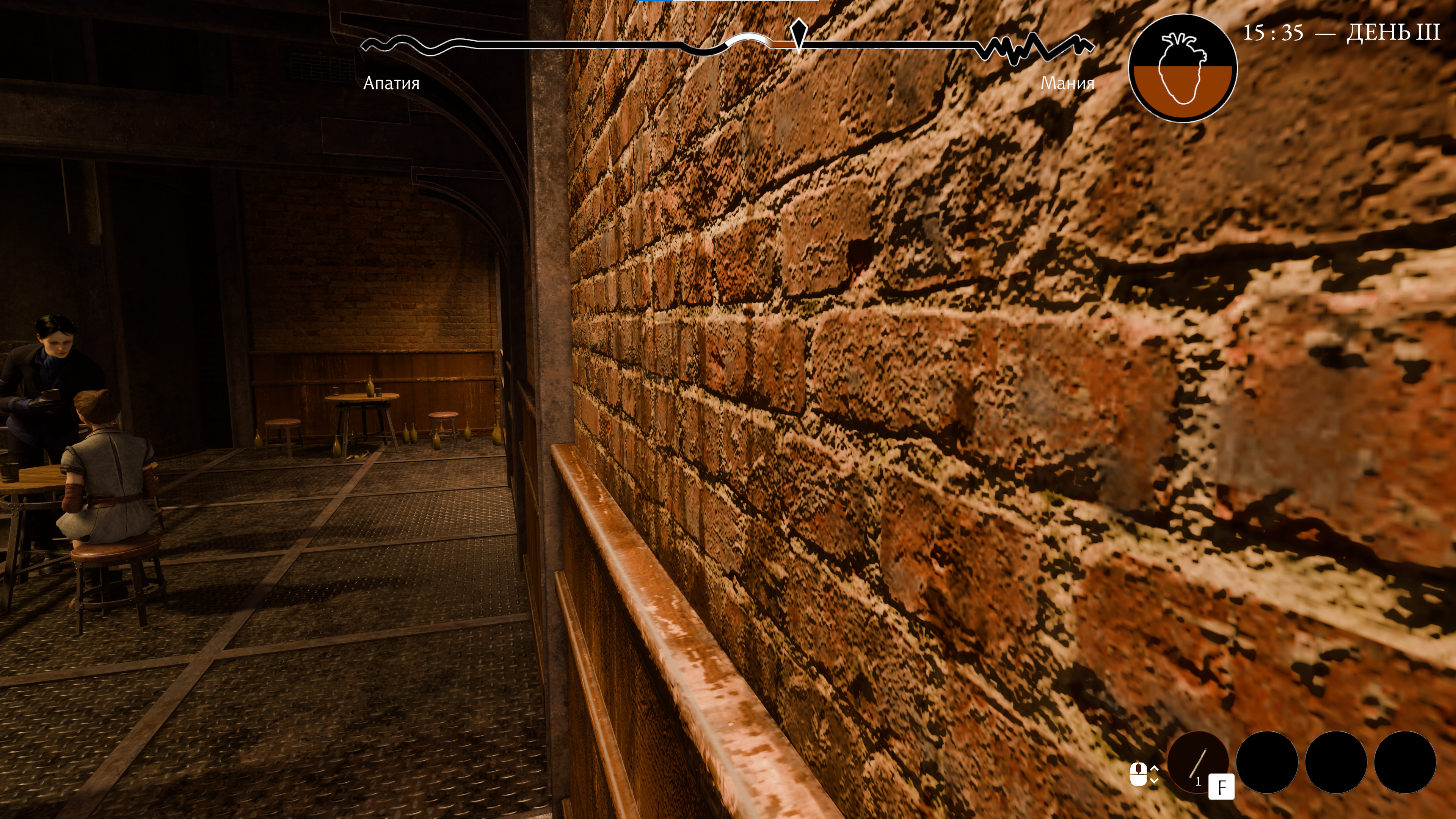 И вопрос "Зачем"? звучит в голове очень часто. Лучше и не скажешь: "Зачем вообще нужна механика, при которой от самоубийства я спасаюсь, пиная баки и шатая детские качели? Зачем вообще нужна механика, при которой моё сердце разрывается при попытке две минуты погреться у бочки, а затем сказать кому-то, что у нас всё будет хорошо?" Эта хуйня, когда действие Х даёт ресурс Y и это не кажется чем-то здоровым - в целом норма для всех этих нарративистских игр. Но там это так не било в глаза. Да, мне казалось странным, когда при поедании одного кабачка в Часослове мне давали 1 очко Зимы, а при поедании другого - 1 очко кузни, но здесь... >>50660771 Когда как. Финальные реплики с ромбиком по типу "грустный ответ" - "оптимистичный ответ" точно влияют. Но почему юла злит, а плюшевой бычок печалит, почему грустная пианинка злит, а патефон печалит - я совершенно не понимаю. Это как будто из какой-то мобильной игры. Это НЕСЕРЬЁЗНО. Это, что называется, геймистский элемент, на фоне которого бег по диагонали из первой части и кофейные бинты из второй (снижать усталость кофе, а потерю здоровья от кофя лечить перевязкой) - детский лепет. Тут буквально кор-механика вокруг подобных вещей, с которыми никакой ролеплей не работает. В П2 я наступал на горло ролеплею, зажимая шифт или слишком активно вступая в бартер с каждым встречным. Можно было стиснуть зубы и играть без этого, бегая лишь по мере необходимости, меняясь потихоньку. Тут - вот эти "на пианинке скорость с утреца набрал, на 20 сердца принял настоечку, тут попинал бачок, тут дрыньк-брыньк на динамо-машине, тут в арочку по ведьмачьему чутью"... блядь, как же это ИСКУССТВЕННО.