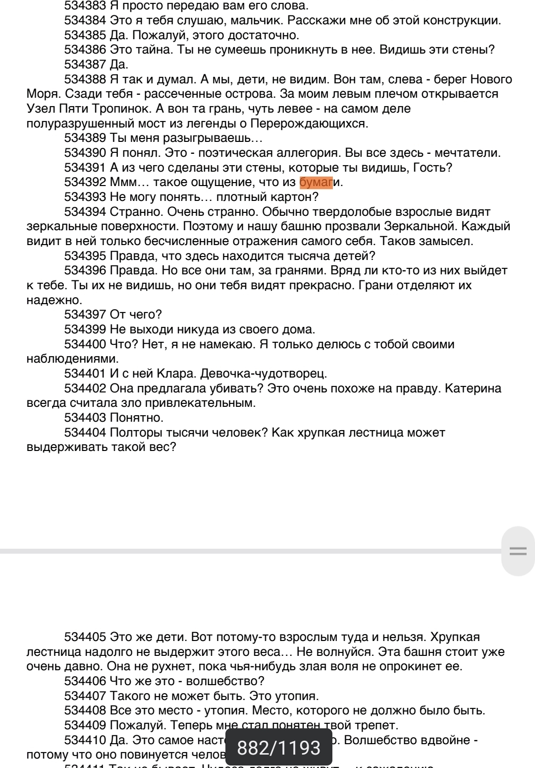 Дело-то не в текстах, чёрт бы с ними. Тут сеттинг переписан в самом своём духе. Классический Мор - это магический реализм. Здесь - прямо мощнейшее такое городское фэнтези: - Шабнак. Уже сто раз писали. Чисто Монстр из Аутласта. Отмазки про метафору не работают - это блядский голем. - Собор, этот кринжовый смотритель с гирляндой ключей. - Эти "ехал магический трип через магический трип". В двушке это было пару раз, когда Смерть с нами встречалась. Тут прямо настырно так трипы пихают: одна комната с зеркалами чего стоит в начале. - Ева Ян, которая живёт вне времени, крипповая, блин. И никакой фут-фетиш этого не исправит. Раньше -мета тему шатал Бессмертник, теперь её шатает каждый второй: Ева, одонги, смотритель собора, дети. Опять же - одно дело двусмысленные реплики про то, что дети устали играть и обивка лезет, и другое - целые монологи. Магии теперь вот прямо ДОХУЯ. Я чувствую себя в мире Нила Геймана или Чайны Мьевиля.