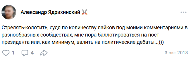 >>50678543 Я все же сомневаюсь, что мор был для дыбки так важен. Ему нужны были слава и внимание дам, он их получил, просто ранее для этого немного постарался. Как только получил желаемое, стараться перестал, что показатель. А потом ушел преподавать в вышку изредка являясь, шлепая недовольно губами и сверкая глазами, а затем снова убегая. Не сказал бы, что мор его любимый ребенок. Скорее курица, которая снесла немало золотых яиц хозяину, пока ее не отобрали. Ты спутал причину со следствием в мотивации дыбки, что на самом деле говорит о тебе как о неплохом человеке, идеалисте. А дыбке сейчас да, нехорошо, но вряд ли в первую очередь из-за потери права участвовать в разработке, это лишь вишенка на торте.