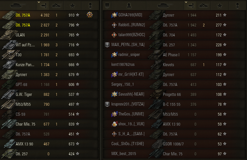 >>50663139 Ну да, приятный тунк стал. ДПМ мое почтение. После шестилетнего перерыва решил выкачать 11 уровень. Сбросил ветку Е-100. Вроде довольно приятная ветка. Тигры и Е75 весьма адекватно катаются даже в нынешних реалиях.