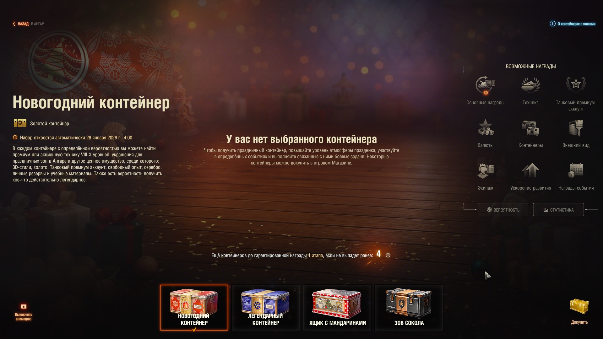 Такое ощущение, что шанс синего контейнера процентов 90, а шанс Файрберда - 10 в этой группе. И тогда получается, что вероятность достать из новогодней коробки Файрберда - это не 1% (как подумают 99% танкистов), а 0.01*0.1=0.001 или 0.1% или в среднем 1 танк на 1000 ящиков. То есть его цена в среднем 86 тысяч рублей. Но это просто пальцем в небо. Реально, шанс его выпадения может быть меньше (или даже больше). Просто лень видео пересматривать и считать.