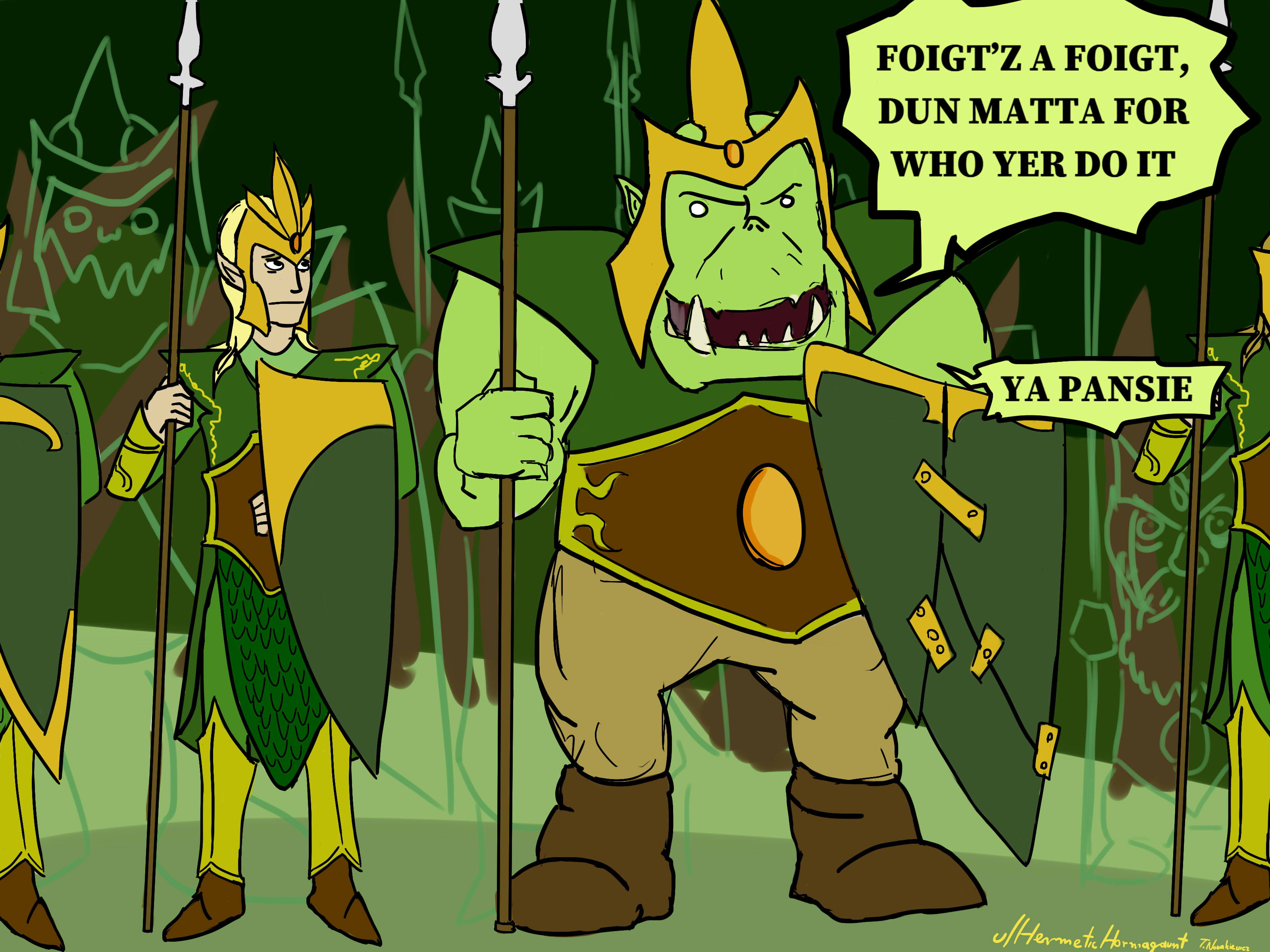 Бери пример с Империума в 40к как с полноценной фракции, недофентезикалыч. Там даже абхуманы являются частью единой фраки. Потому что в них человеческого всё равно дохуя даже генетически и внешне. Хотя они явно больше от обычных людей отличаются, чем условнй кислевит от условного имперца к примеру.