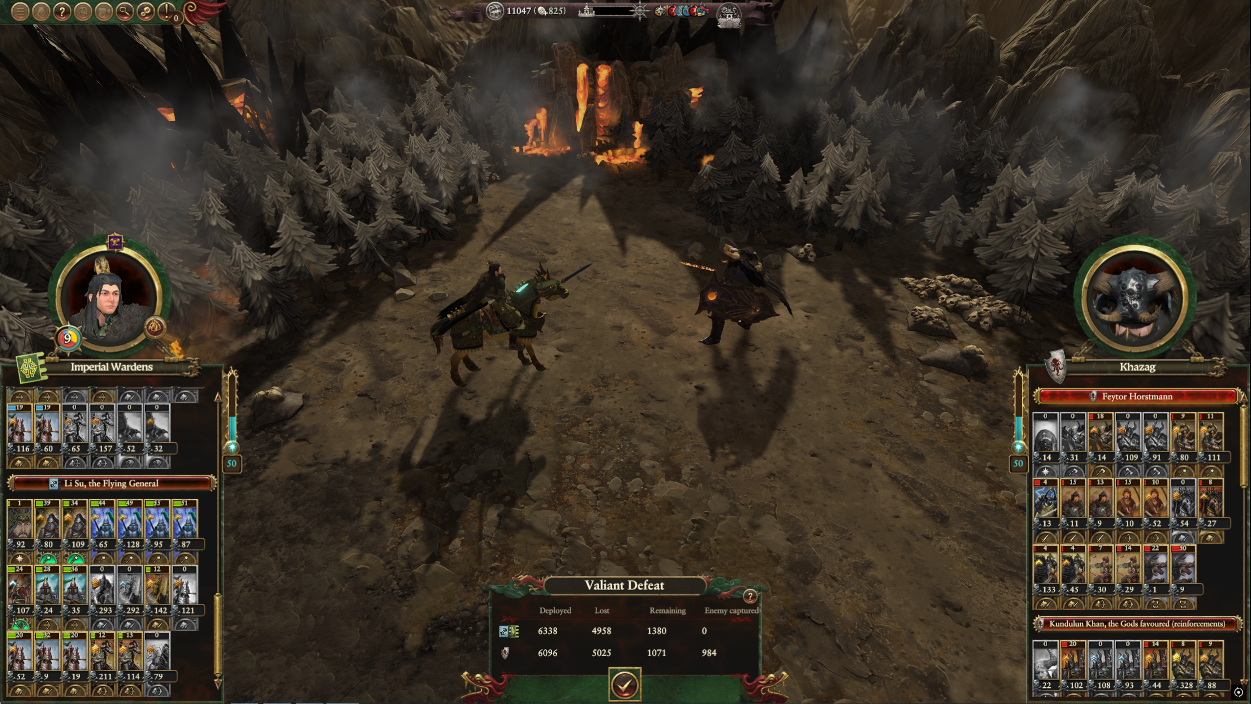 >>50740107 Ну Готрик и Феликс на старте мало что могут, дережабь сила это да. Проблема не в том что медлишь, война считай начинается ходу на пятом, четыре хода чтобы дойти до крыс и взять столицу, плюс один чтобы перебросить основного лорда на север, после этого обычно Трогг сразу войну и кидает на ластовой сложности. Но тут проблема не в том чтобы отдефать/захватить Трогга, проблема в том что делать дальше, ходу к шестому, седьмому тебе скорее всего уже кинет войну хаосня за морем которую ты пиздить не поплывешь, а если даже и поплывешь то тебе кинет войну кто-то из Норски в которую тоже не особо хочется дальше идти т.к. ты просто расширишь морскую границу с демонами на севере и северо-западе, и оставишь восток не прекрытым перед либо отожранными кхорнитами, либо отожранными хаоса гномами.