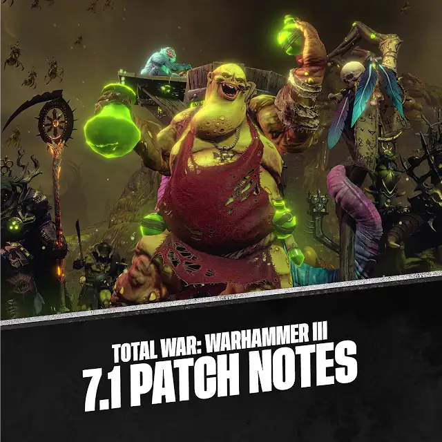 АНОНСИРОВАН Total War: Warhammer 40К! Узнать больше там: https://www.totalwar.com/news/total-war-warhammer-40000 Даты релиза пока нет. Warhammer 3 1) Анонсировано новое длс Lords of the End Times с НАГАШЕМ!: https://www.youtube.com/watch?v=jPIpN9OKKR4 Обещают летом 2026 года. 2) Вышло ДЛС со Слаанешем Tides or Torments. Лорды: Дечала Отвегнутая (Слаанеш), Сейл Вероломный (Норска) и Айслинн (высшие эльфы). Бесплатный лорд для всех - Маска (Слаанеш). 3) Для тех, кто вкатывается после долгого перерыва в игру - патч 6.2 был ОГРОМНЫМ по размерам (аж 55 гигов) и перелопатил все файлы игры, так что придётся потерпеть долгую закачку и установку. Зато после него размер игры снизился примерно на четверть и загрузки в самой игре станут побыстрее. 4) Патч 7.03 с фиксом Кайроса и прочих багов релизнулся из беты.