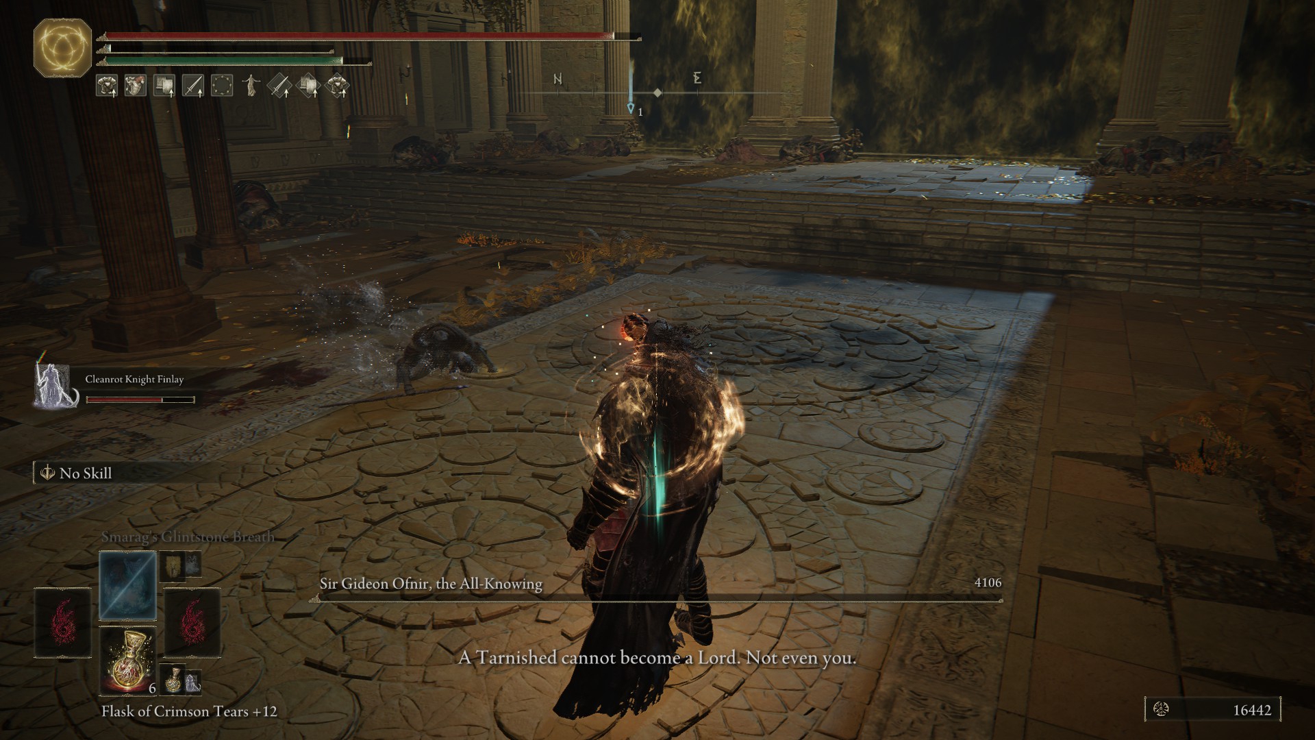 Почти полностью закончил, 58 лвл, это учитывая что я практически ничего не исследовал и не проходил сюжет, и мне осталось забрать Кузнечный камень мрака 7 (остальные есть), но беда в том что до него можно добраться на данном этапе только через Аристократа божественной кожи, а я пиздец как заебался пытаться убить его. С сонными зельями, кометой, и самым сильным посохом, но он всё равно меня выносит. Снимал ему 7/8 хп пару раз, но каждый раз всё наперекосяк идёт. У меня лилий Трины почти не осталось для того чтобы его усыплять каждый раз.