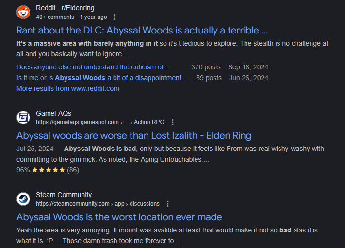 >>50711361 Наблюдал издалека ваш срачик, извини, вчитываться лень. Элден Ринг для многих стала лучшей игрой фромов, в том числе для меня. Можешь хоть усираться, но это факт, подтвержденный отзывами, наградами и продажами.