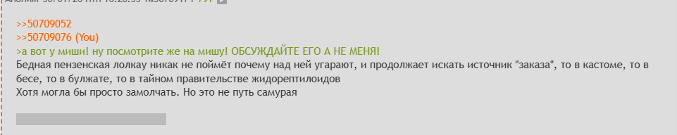 >>50709052 >>50709076 >а вот у миши! ну посмотрите же на мишу! ОБСУЖДАЙТЕ ЕГО А НЕ МЕНЯ! Бедная пензенская лолкау никак не поймёт почему над ней угарают, и продолжает искать источник "заказа", то в кастоме, то в бесе, то в булжате, то в тайном правительстве жидорептилоидов Хотя могла бы просто замолчать. Но это не путь самурая
