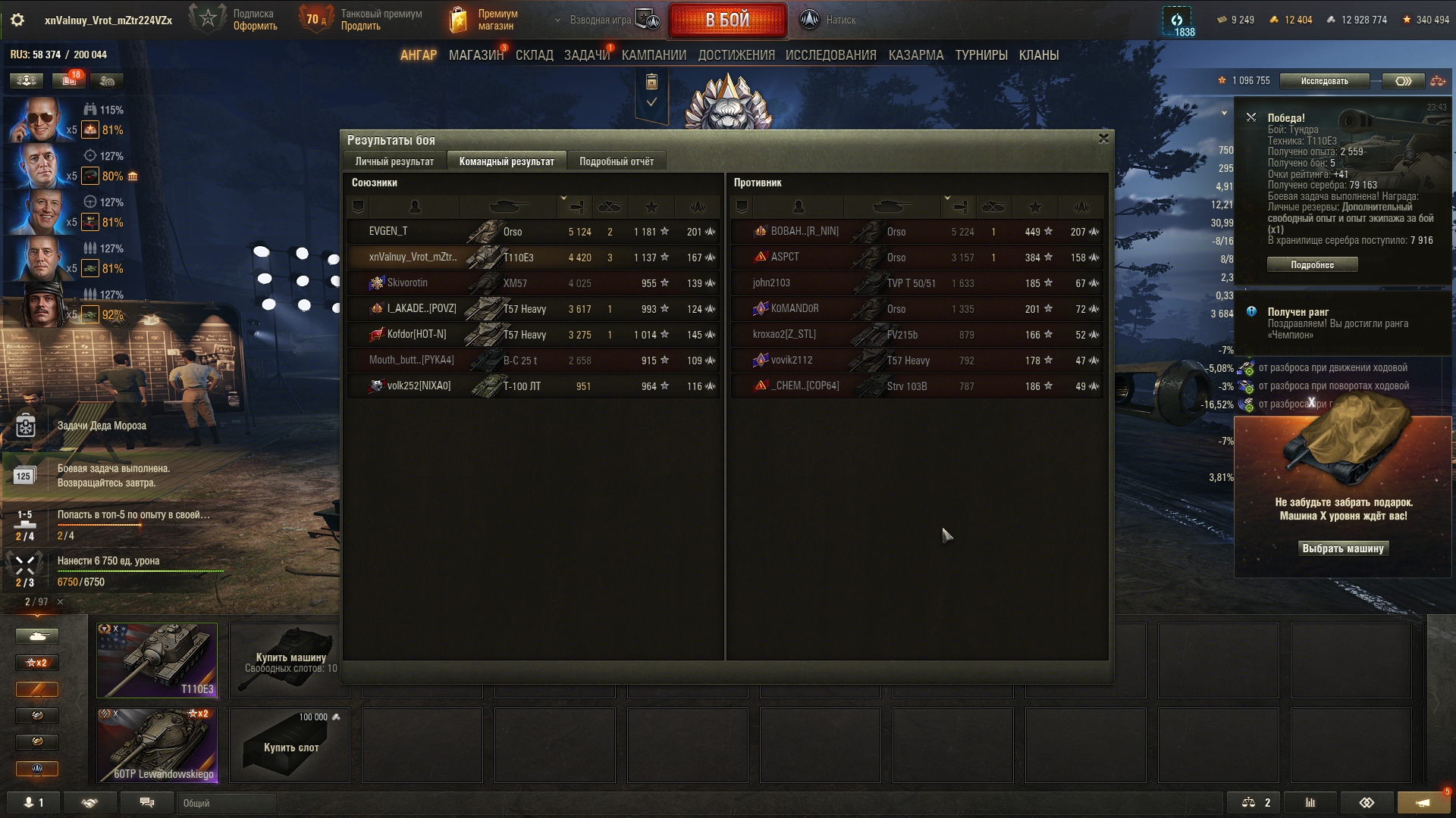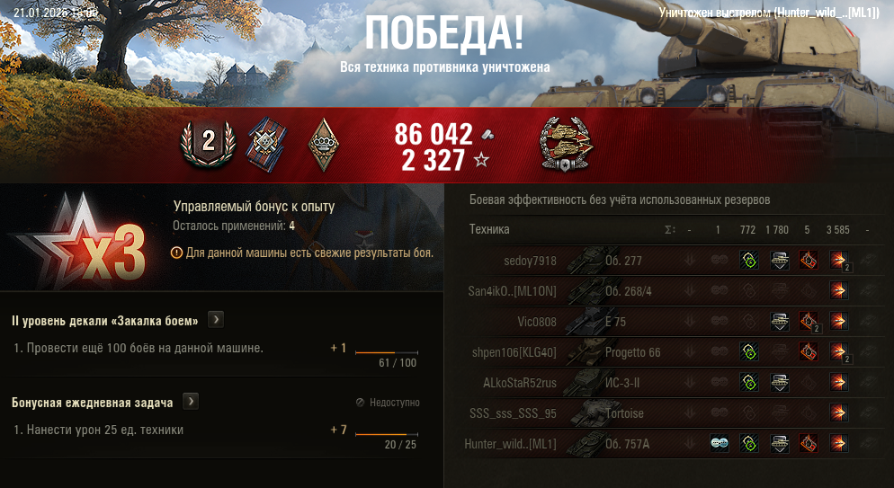 Вот это, думаю, мой максимум в текущем сезоне. Какой-то нереальный винстрик в последние два дня вышел, но навряд ли так дальше будет Эх, доделаю два последних квеста в натиске, и нахуй танки до нового сезона!