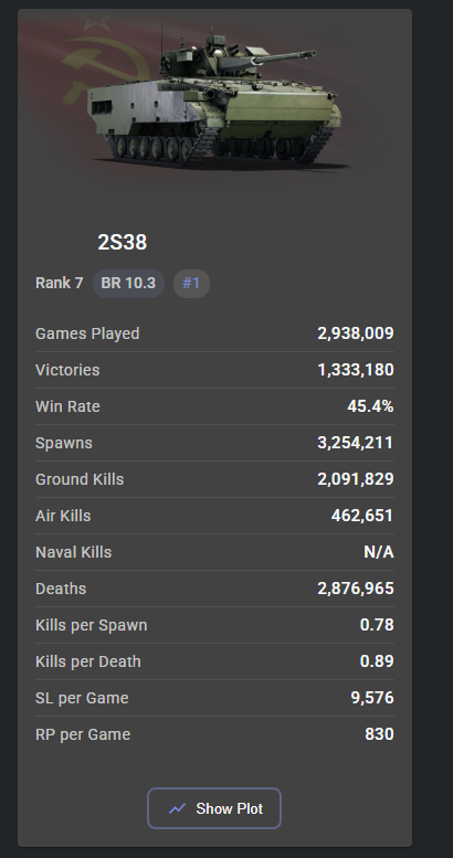 Заорал нах с рухнум биаса, корм с позорной статкой по бру поднимают (кое как 50% винрейта с терминатором в декабре), она даже для 9.3 танков фрифраг. Вот например стата ттд, который слабый и ему наоборот бр снижают.