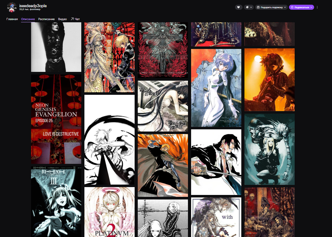 >>50721311 Привет Дима, ознакомился с вашим потоком. Вы большой молодец, что имеете 14к в таком юнном возрасте, да ещё и на саппортах. Хотел бы дать пару советов, как набрать популярность: у вас под стримом написано, что вы относите себя к культуре dead inside, но на вашего стриме абсолютно отсутствует какой-либо стиль. 1: Музыка, у вас на стриме тишина, многие держат стрим открытым только ради битов. Техно/фонк ремиксы российских треков 2000-х, ост гуля, волейбола, в перемешку с трешем вроде лабубы, фармим ауру фрика 😈 2: Карта у вас не закрыта от стримснайперов, там должна быть либо ваша любимая топ тяночка из аниме, любо опасный мужчина, воин (Фейтан, Кенпачи, Хельсинг..). Не ставьте туда оверхайп типо: магической битвы, джоджо, бензопилы. Это сразу выписывание в позеры 3: Навалить стиля в описание, без лишних слов, просто покажу на что нужно равняться (пик 2)