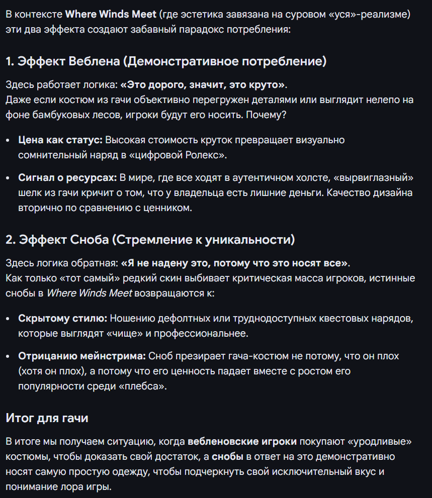 >>50798723 Короче, поясняю за валюты: 1) Coins - обычные деньги, наваливают везде, используются для прокачки шмота и скиллов оружия. Так же можешь материалы всякие покупать у вендоров, но не переусердствуй, на высоких лвлах нужно дохуя. 2) Commerce Coin - дополнительные деньги. В принципе нужны только для покупки еды для баффа собирательства, рыбалки и прочего. Покупаешь у кота сундуки, получаешь 25к и живешь долго и счастливо. Остальное, что моно на них купить чисто вкусовщина, ничего важного. Можно типа играть в трейдинг, забавно, но долго объяснять 3) Echo Jades - валюта для круток, 160 = 1 простая круткаю Не трать их пока не скупишь все иннер вэи у вендоров в принципе можно и потом их купить, но морал чант это база почти любого билда, а в начале этой валюты наваливают очень много Далее крути как хочешь. Так же за них можно сбрасывать прогресс в прокачке оружия. 4) Seasonal Currency - они же рыбы. Самая важная валюта, недельный кап 23000, наваливают за все. На нее закупаешься каждую неделю в сезонном магазине. Единственный способ нормально прокачать профессии врача и школяра школяра не качай, максимум до 2 тира, он нахуй не нужен, а вот прокачка врача открывает крафт лечилок 5) Все остальное гача хуйня или чисто для внешки