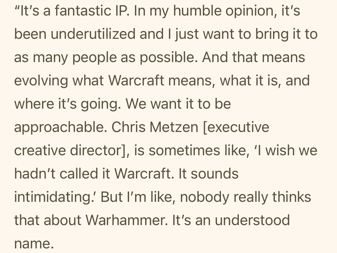 >>50733190 Бтв картинка из треда в твиттере, где комментируют интервью, где упомянута якобы цитата Метцена, где он сказал, что не надо было называть варкрафт таким название, потому что оно угрожающе звучит.