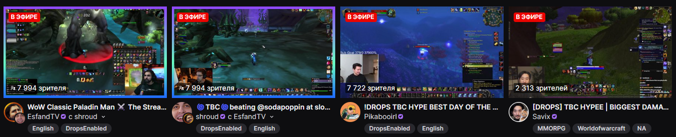 а почему если открыть твич там постоянно классика либо пиратки и везде тока три аддона класика бк вотлк а если найти кавото с ретейла там 100-300 зрителей