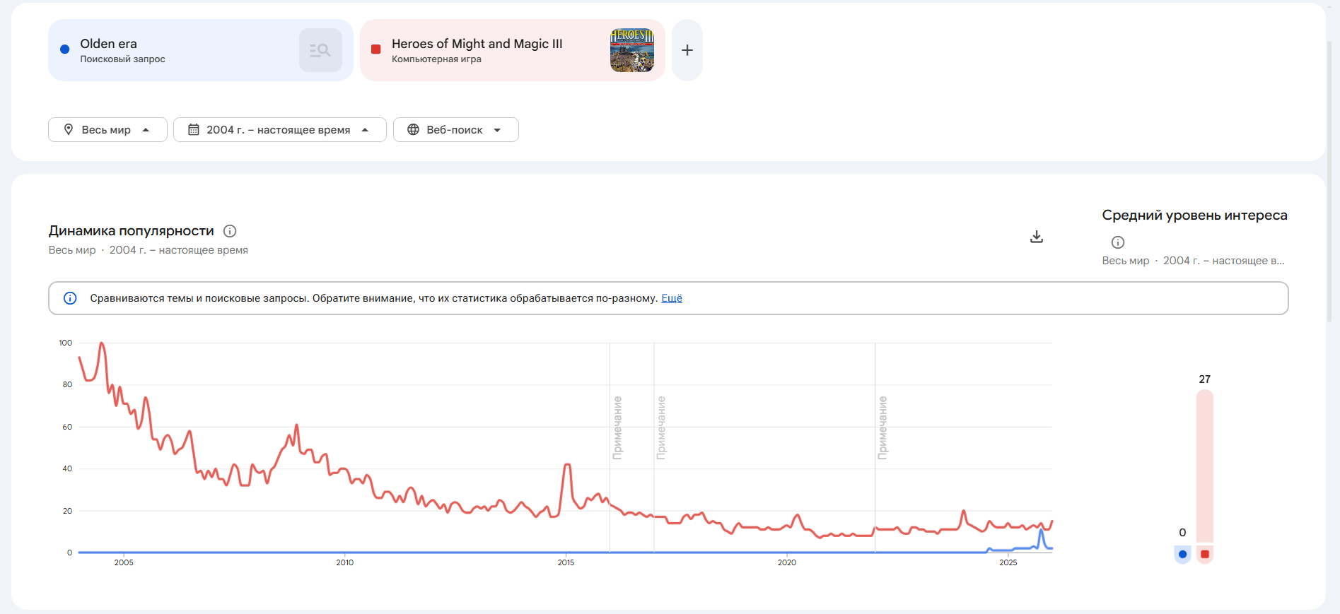 Помнишь ты хотел сравнить показатели "релиза тройки" данные аж за 98 год гугл не хранит, но зато хранит с 2004.