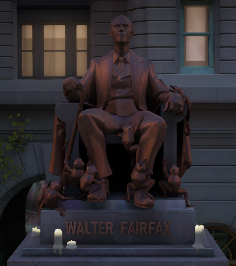 по лору покета, он же Эрин Фэйрфакс, его батек незадолго до свадьбы покета с миной заказал калико его убийство, хз зачем точно, ну вот захотел чтоб не было больше у него сыночки корзиночки. Эрин выжил и подался в бега, взяв себе имя покет. параллельно он спиздил чемодан с лягушками, которые судя по всему являются каким-то убер оружием или просто секретом семьи Фэйрфаксов, потому что и в репликах покет часто говорит, что дескать как хорошо, что эта сила не в руках моего отца, плюс относительно недавно на карте появилась статуя предка покета, Уолтера Фэйрфакса, вокруг которого изображены куча лягушек (эта же статуя на фоне рендера покета при выборе персонажа и загрузке в матч). как я понял, they them он потому, что максимально скрытный образ жизни ведет, при этом имеет планы по захвату батиной корпорации. и типа чтоб его не раскрыли он даже пол личности покета держит в секрете