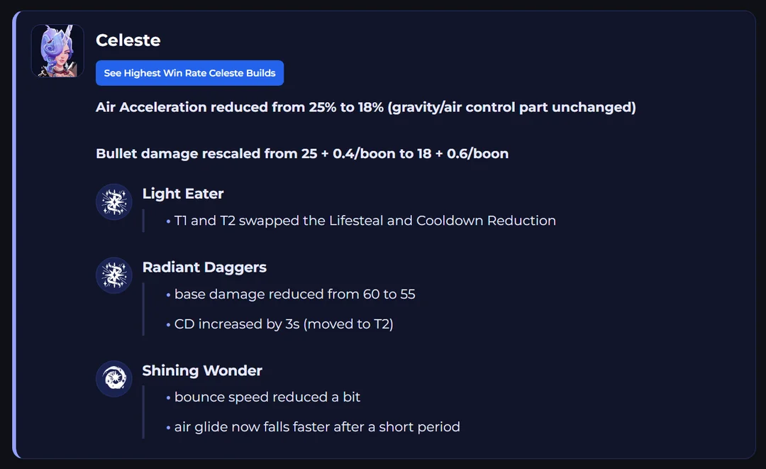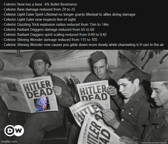 Селеста - кроме злоебучей ульты (разработчики видимо специально решили добавить в патче побольше именно бесячих способностей, не полезных / сильных, а именно что бесячих, которые помимо спиритического урона персонажу наносят еще и ментальный урон игроку), имбового мувмента и всратого дизайна какой-то вебкамщицы ничем не запоминается.